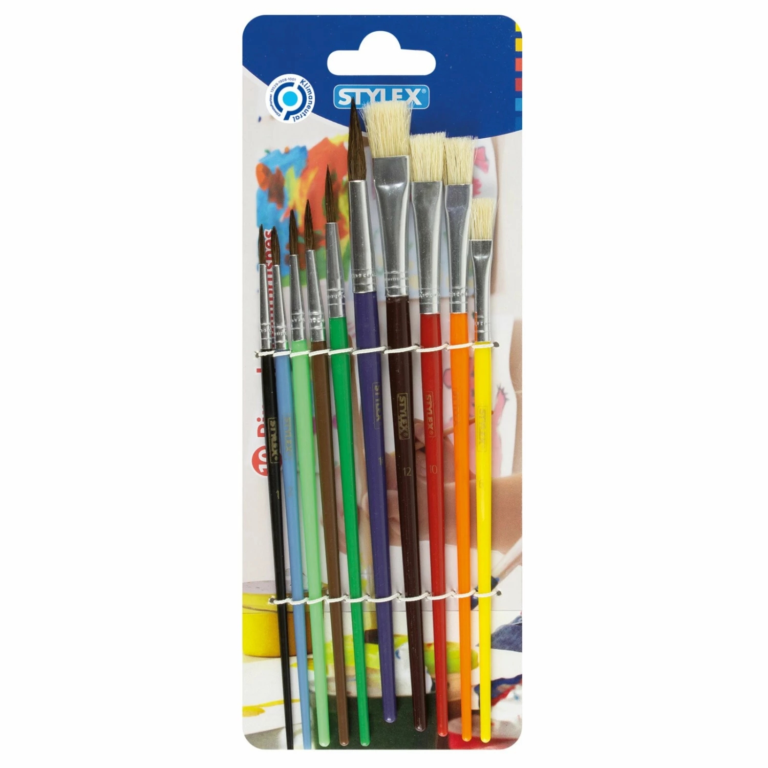 10-teiliges Schulmalpinsel-Set – Holzgriffe – Metallzargen