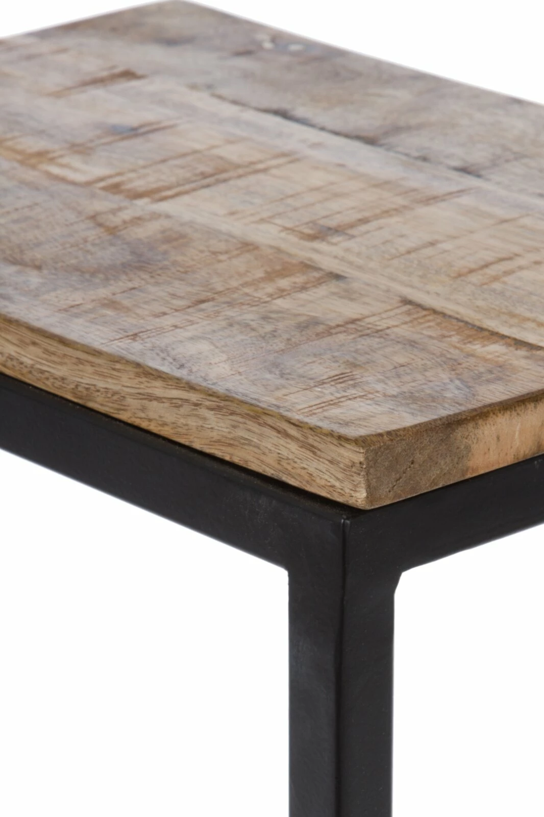 Dieses 2er-Set des Beistelltisches SHIRIN steht auf einem Gestell aus lackietem Metall. Die Tischplatten hierbei sind aus massivem Mangoholz, welches naturbelassen ist und somit die natürlichen Bestandteile des Holzes erhalten blieben. So haben die beiden Tische einen rustiaklen Charakter, den sie in Ihrer Wohnung versprühen werden.
