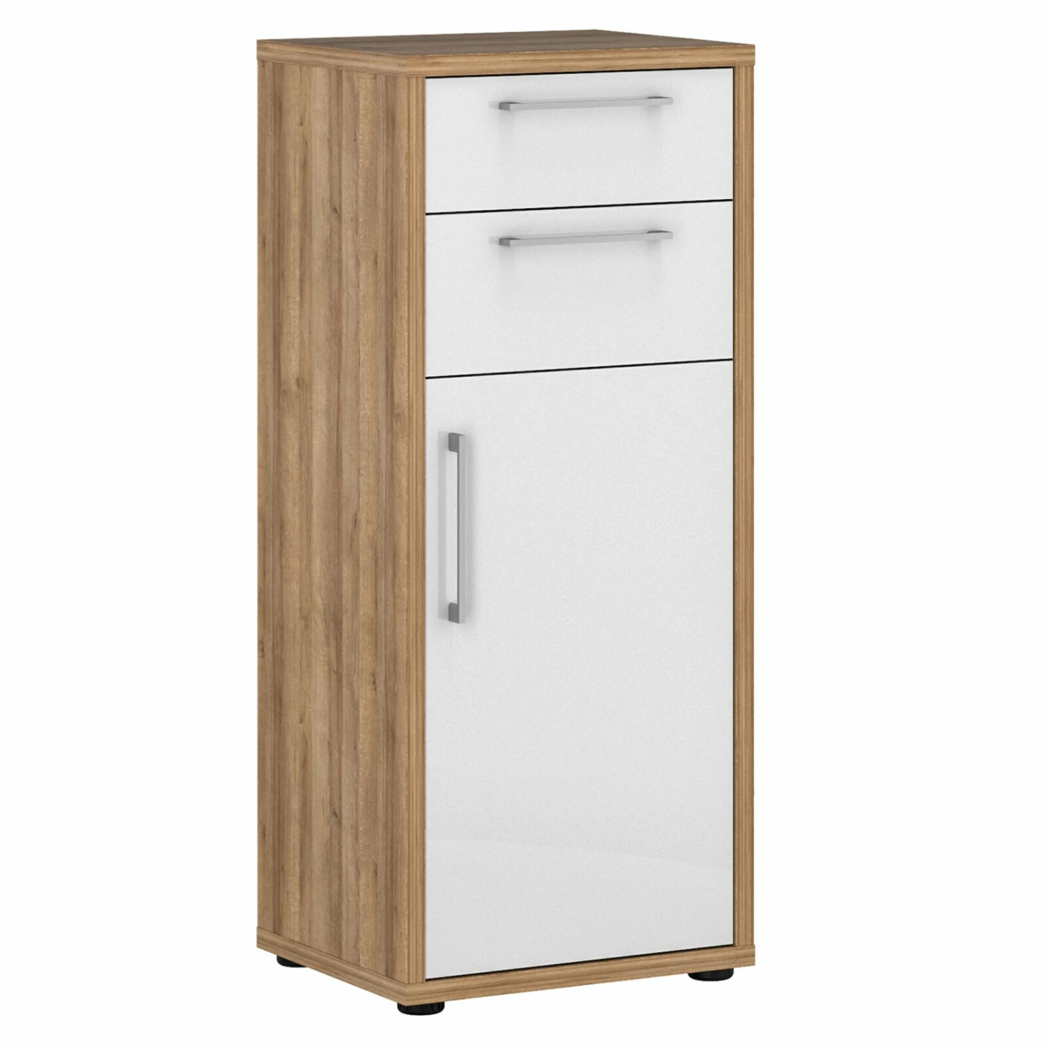 Aktenschrank – Riviera Eiche – weiß Hochglanz – 113 cm hoch