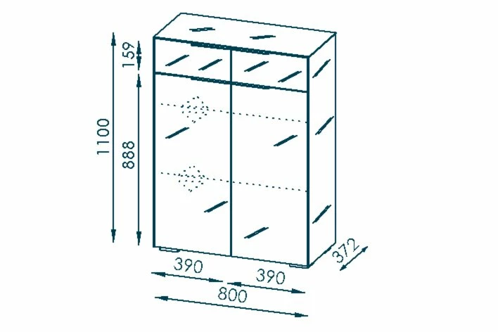 - Stellmaße: BxHxT ca. 80 x 107,2 x 37,2 cm