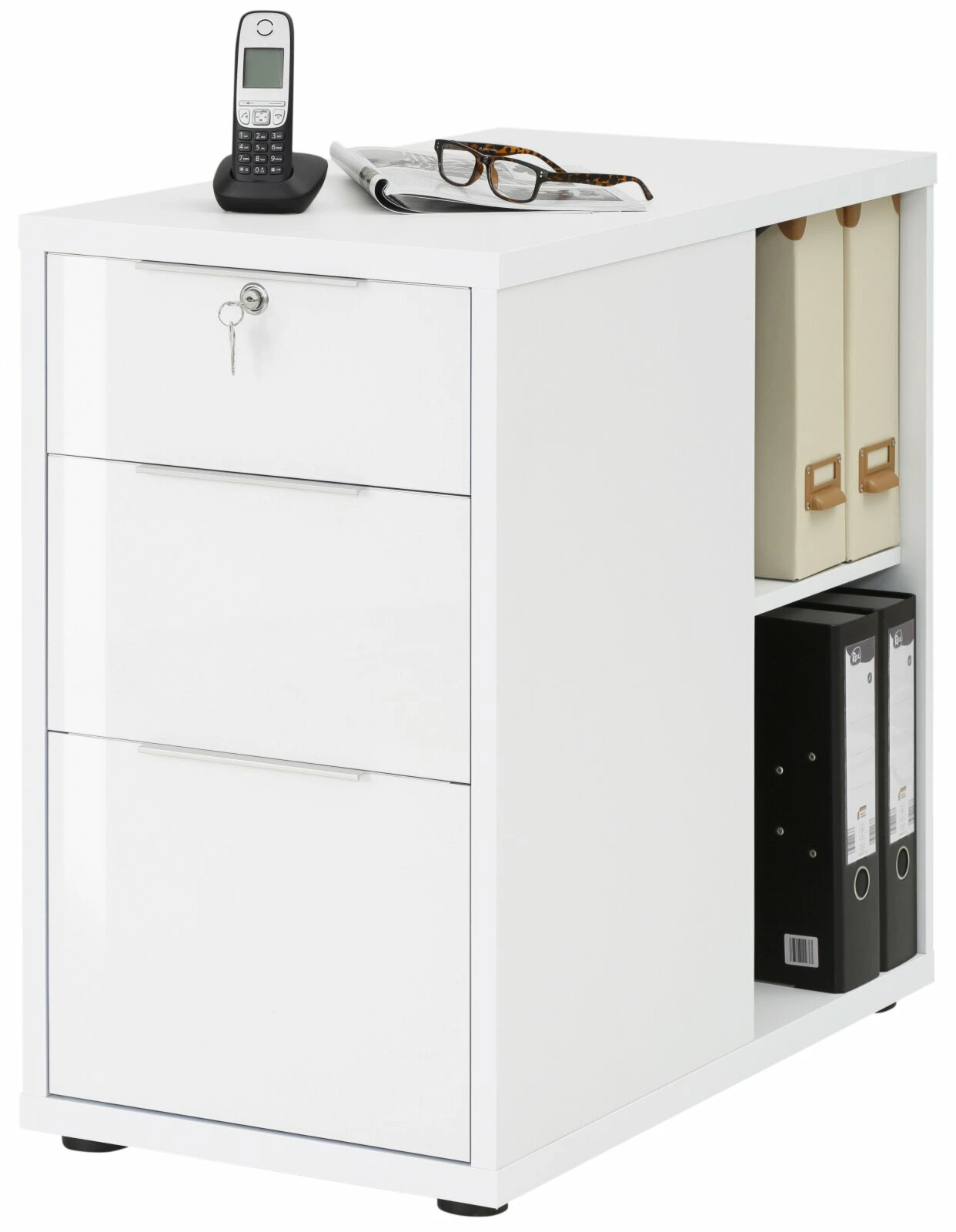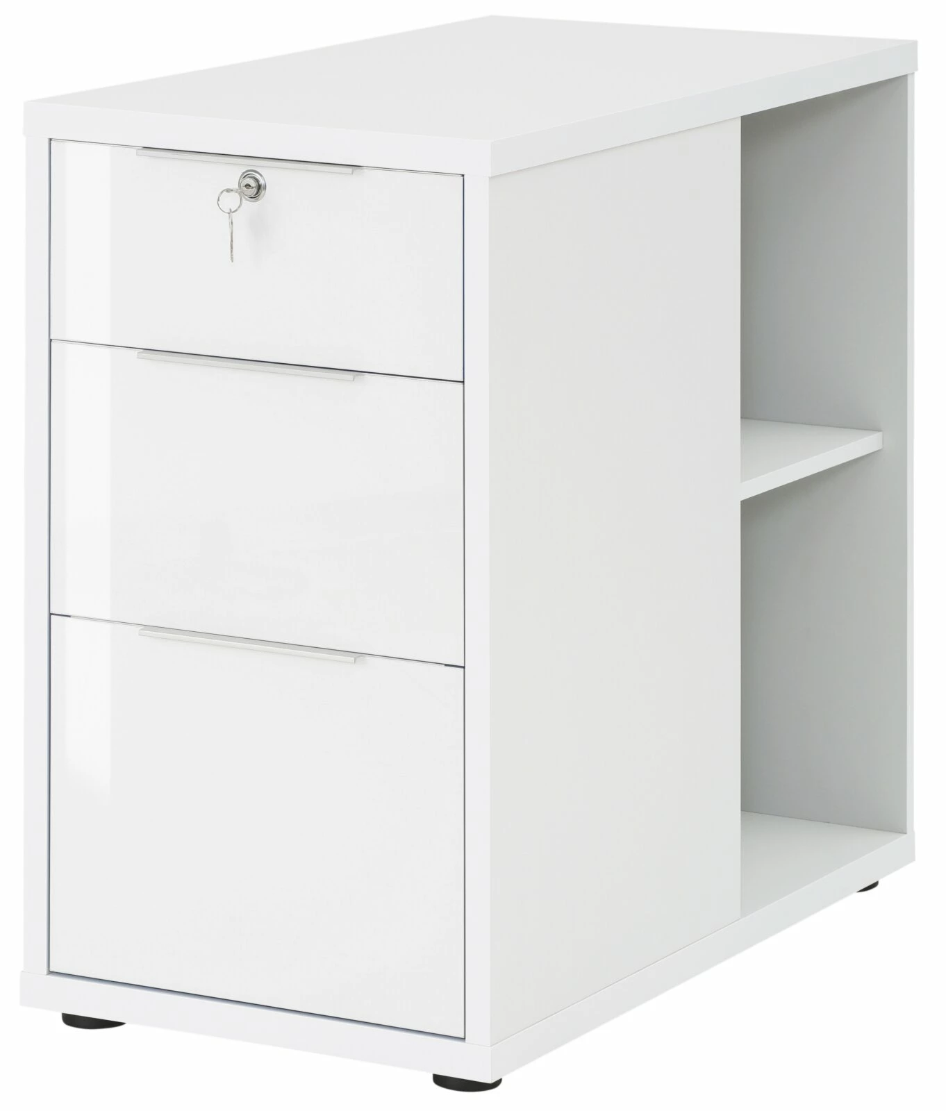 Erweitern Sie Ihr Arbeitszimmer mit diesem Anstellcontainer um ausreichend Stauraum. Der Container in Weiß ist dank seines zeitlosen Designs ein wunderbares Accessoire für jeden Wohnraum. Das abschließbare Fach eignet sich zudem wunderbar zum Verstauen persönlicher Unterlagen.