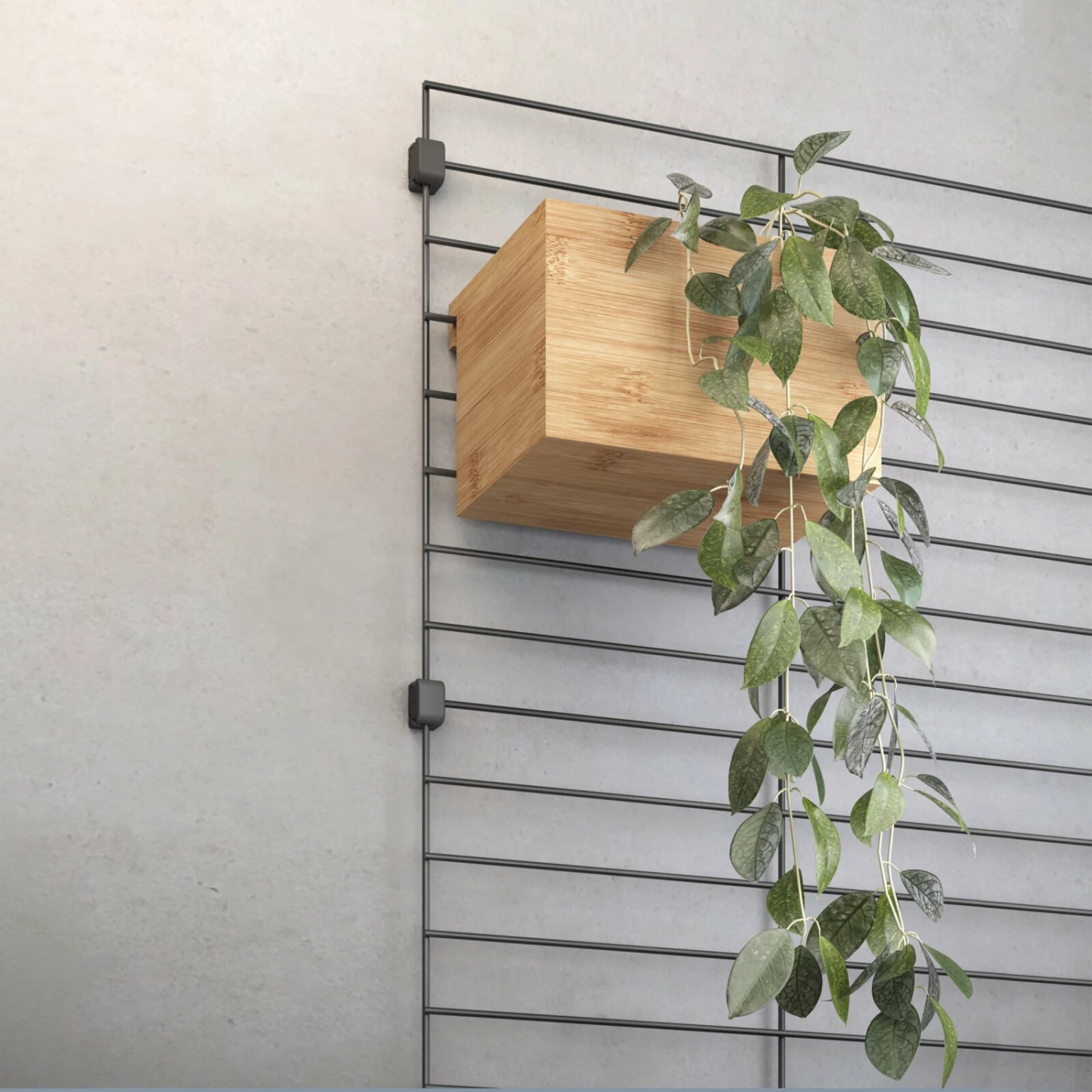 Mit der großen Bambus-Box sorgen Sie für neue Akzente. Durch den Holzton bekommt Ihr System einen Kontrast zu dem üblichen Schwarz und wirkt somit wärmer und lebendiger. Die Bambus-Box eignet sich besonders gut für Pflanzen. Andererseits können Sie auch ätherische Öle einsetzen und dem Raum eine Duftnote verpassen. Die Anwendungsbereiche sind groß und Ihrer Fantasie sind keine Grenzen gesetzt. Die Box wird einfach in das Wandbild eingehangen und eignet sich für alle Wohnräume.