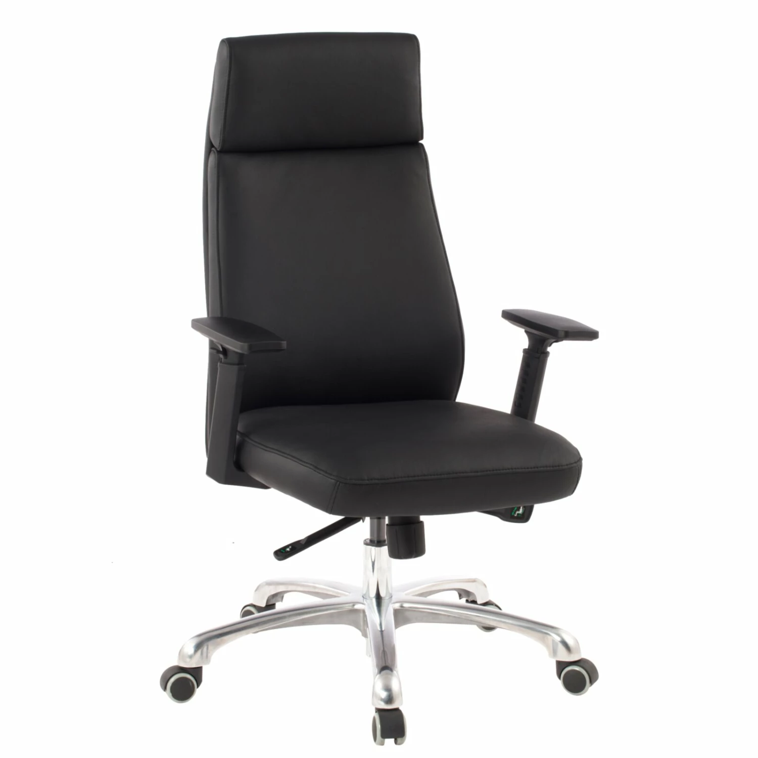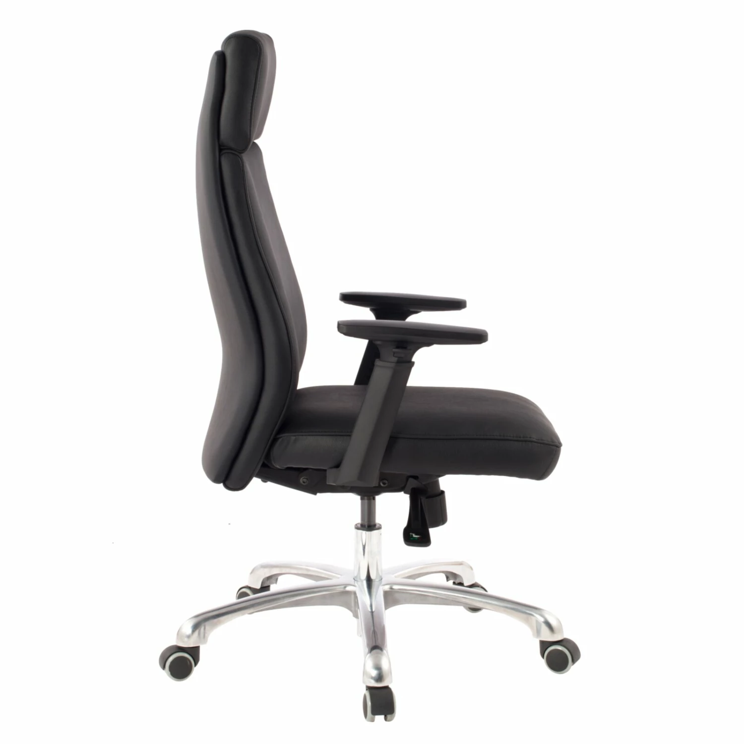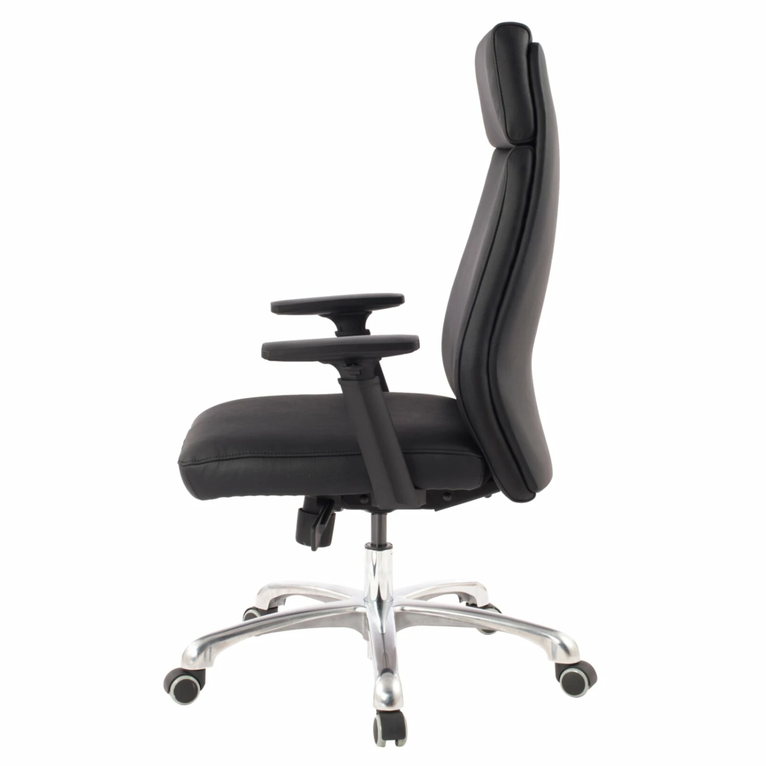 Der Bürostuhl ist mit einem echten Leder in Schwarz bezogen. Somit fügt er sich harmonisch in jedes Büro oder Arbeitszimmer ein. Eine Wippfunktion und Höhenverstellung ist hier möglich. Auch die Armlehnen lassen sich in der Höhe verstellen und sind mit einer Soft-Pad-Polsterung angehem an den Armen. Die ergonomisch geformte Rückenlehne ist mit einer eingearbeiteten Kopfstütze bestückt. Die Rückenlehnenneigung ist mit Gegendruck individuell und stufenlos arretierbar.