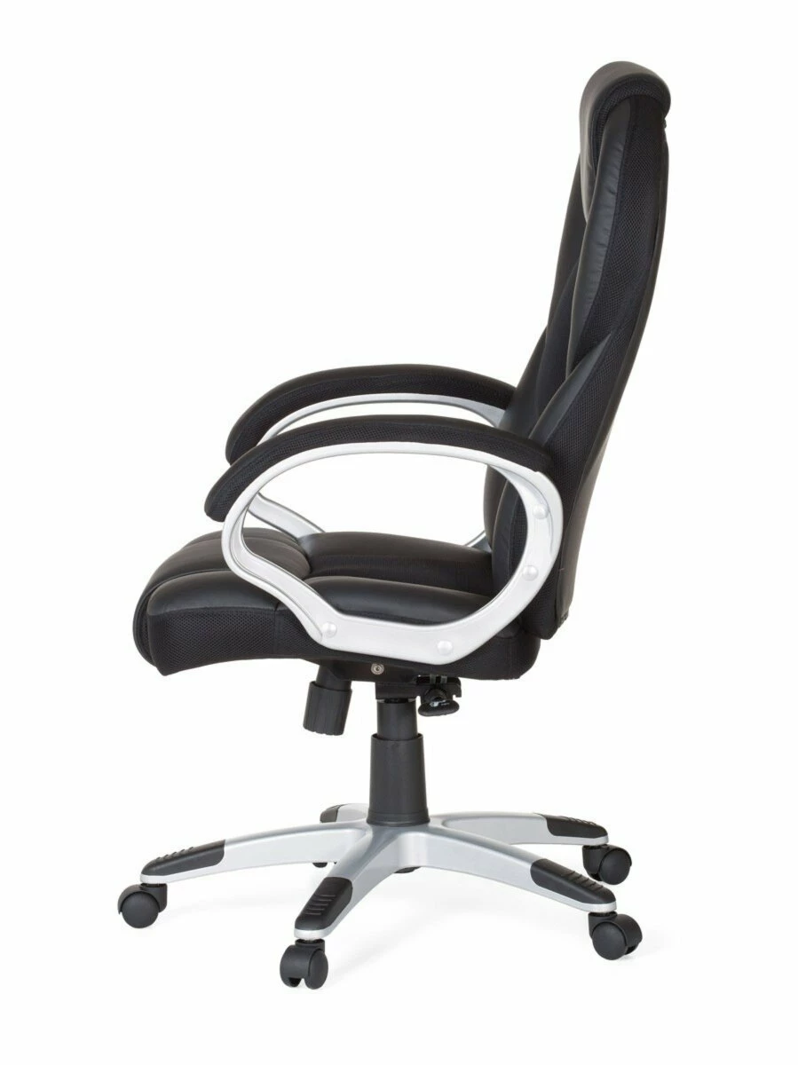 Bei diesem schwarzen Bürostuhl ist von der üppigen Polsterung bis hin zur Höhenverstellung alles dabei! Dieser Komfort ist bei einer achtstündigen Arbeitzeit unbedingt nötig. Die ergonomische Form und die extra breite Rückenlehne mit zusätzlichen Seitenpolstern machen diesen Stuhl zur reinsten Wohlfühloase. Mit dem Gaslift können Sie die Sitzhöhe nach Ihrem Wunsch anpassen. Die empfohlene Sitzdauer liegt bei diesem Bürostuhl bei etwas acht Stunden.