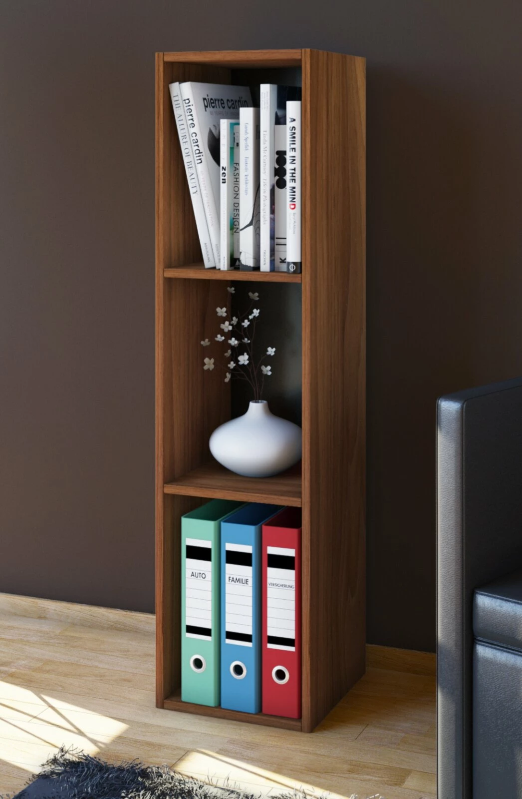 Du weißt nicht, wo du deine Sammelschätze und wichtigen Gegenstände verstauen kannst? In diesem Regal in Kern-Nussbaum Nachbildung kannst du deine CDs und DVDs, aber auch weitere Gegenstände problemlos unterbringen.