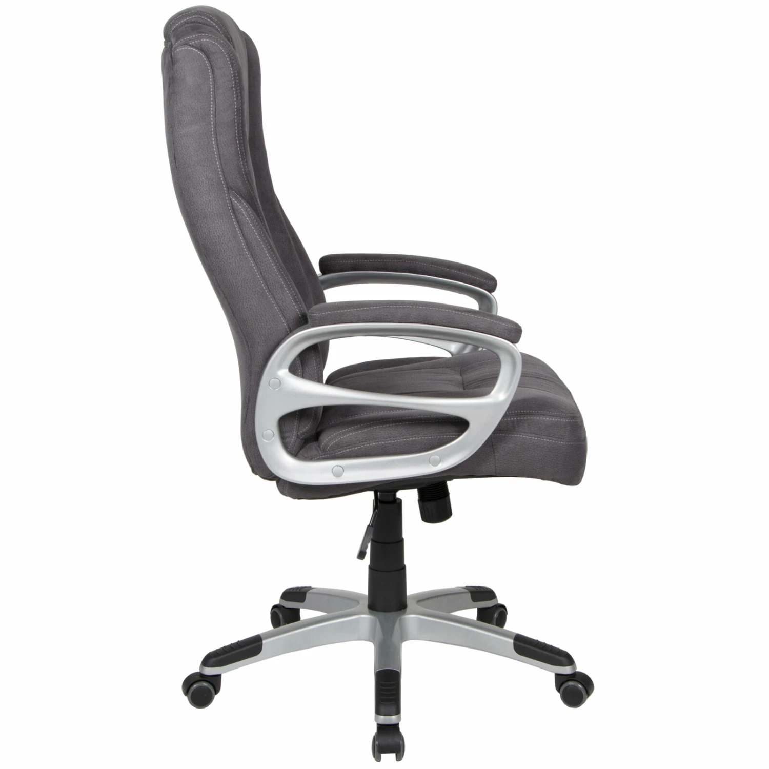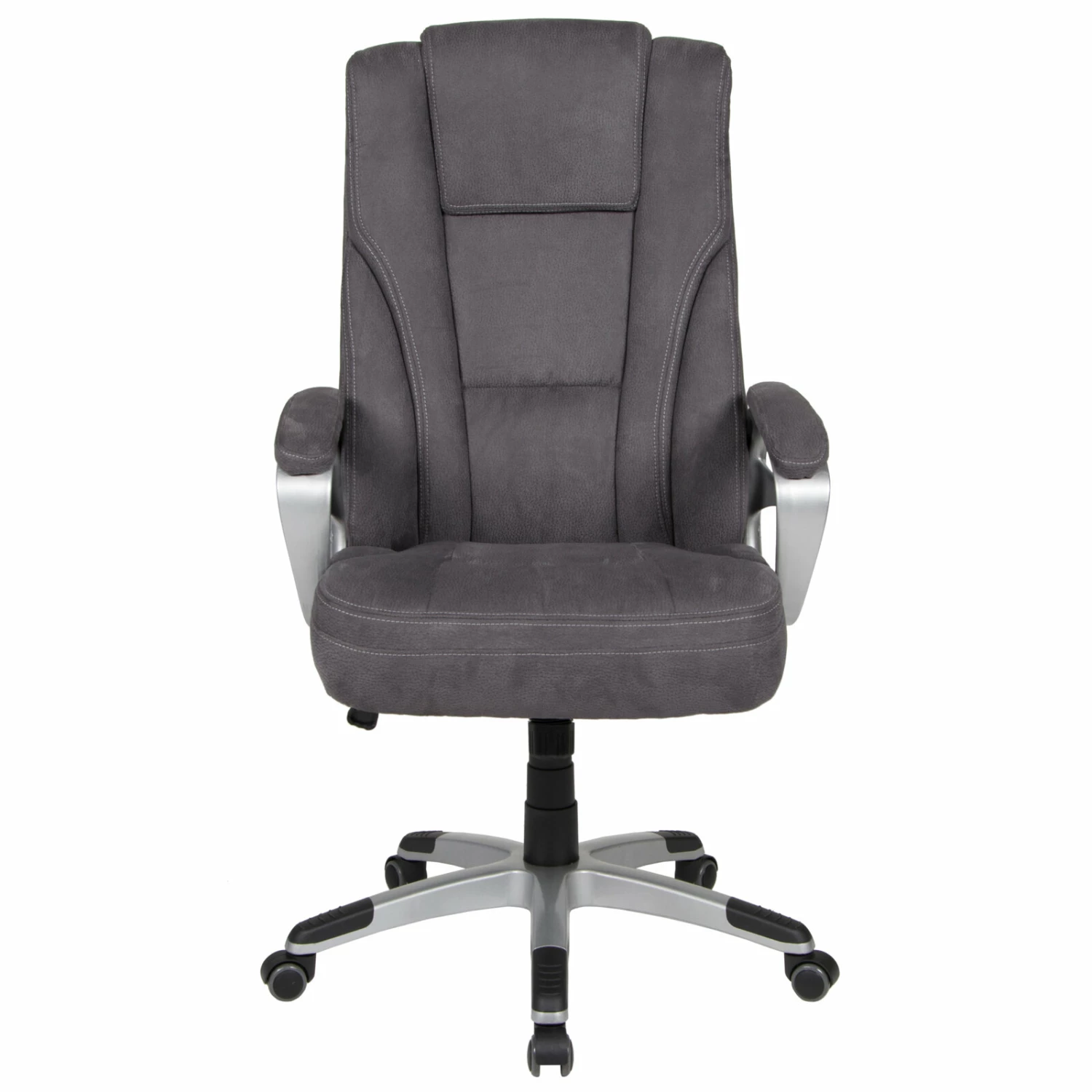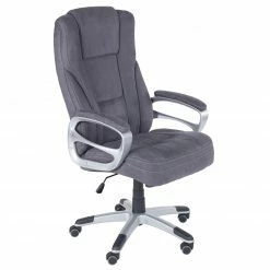 Dieser gemütliche Drehstuhl in Anthrazit passt ideal in Ihren Arbeitsraum. Komfort wird bei dem Chefsessel groß geschrieben, da die Sitzfläche, der Rücken und die Armlehne gepolstert sind. Der Schreibtischstuhl verfügt außerdem über eine stufenlose Höhenverstellung mithilfe einer Gasdruckfeder und eine Wippmechanik mit Härtegradeinstellung. Die hohe Rückenlehne in S-Form passt sich optimal Ihrer Körperform an, sodass Sie stets ergonomisch sitzen. Die hautfreundliche Mikrofaser ist besonders strapazierfähig und die moderne Farbgebung in Kombination mit dem zweifarbigen Fußgestell macht den Stuhl zu einem echten Hingucker.
