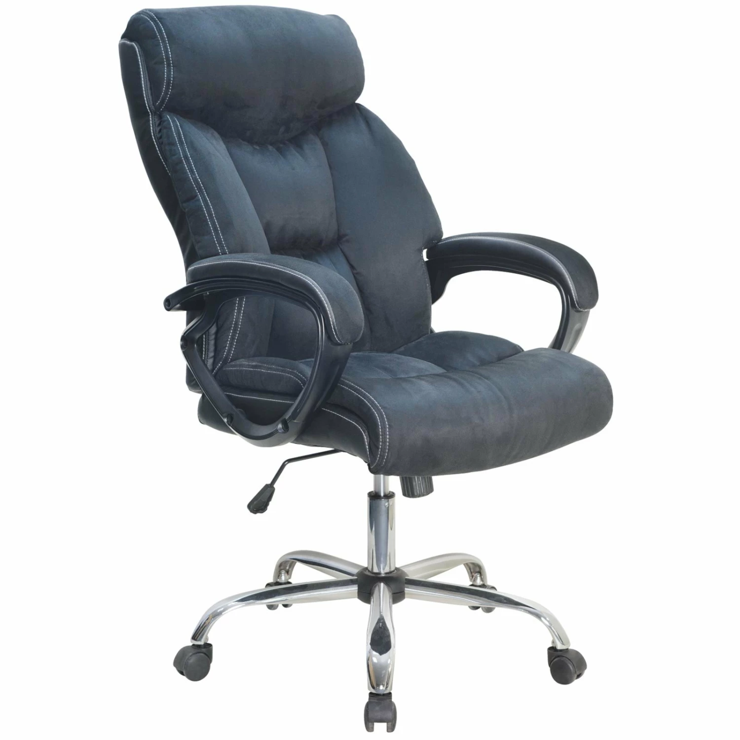 Wer zu Hause Büroangelegenheiten erledigen muss oder im Home Office ist, der braucht einen bequemen Stuhl zum Sitzen. Mit diesem höhenverstellbaren Chefsessel in Schwarz machen Sie nichts falsch. Er passt sich durch sein schlichtes und zeitloses Design in jede Einrichtung. Die Vorderseite des Chefsessels besteht aus Polyester, die Rückseite aus Polyurethan. Die gepolsterten Armlehnen laden zum komfortablen Abstützen ein. Das Gestell ist aus verchromten Metall und dadurch äußerst schick.