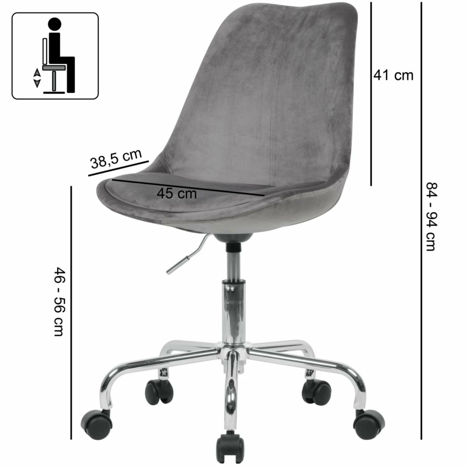 Drehstuhl – dunkelgrau – Samt – höhenverstellbar
