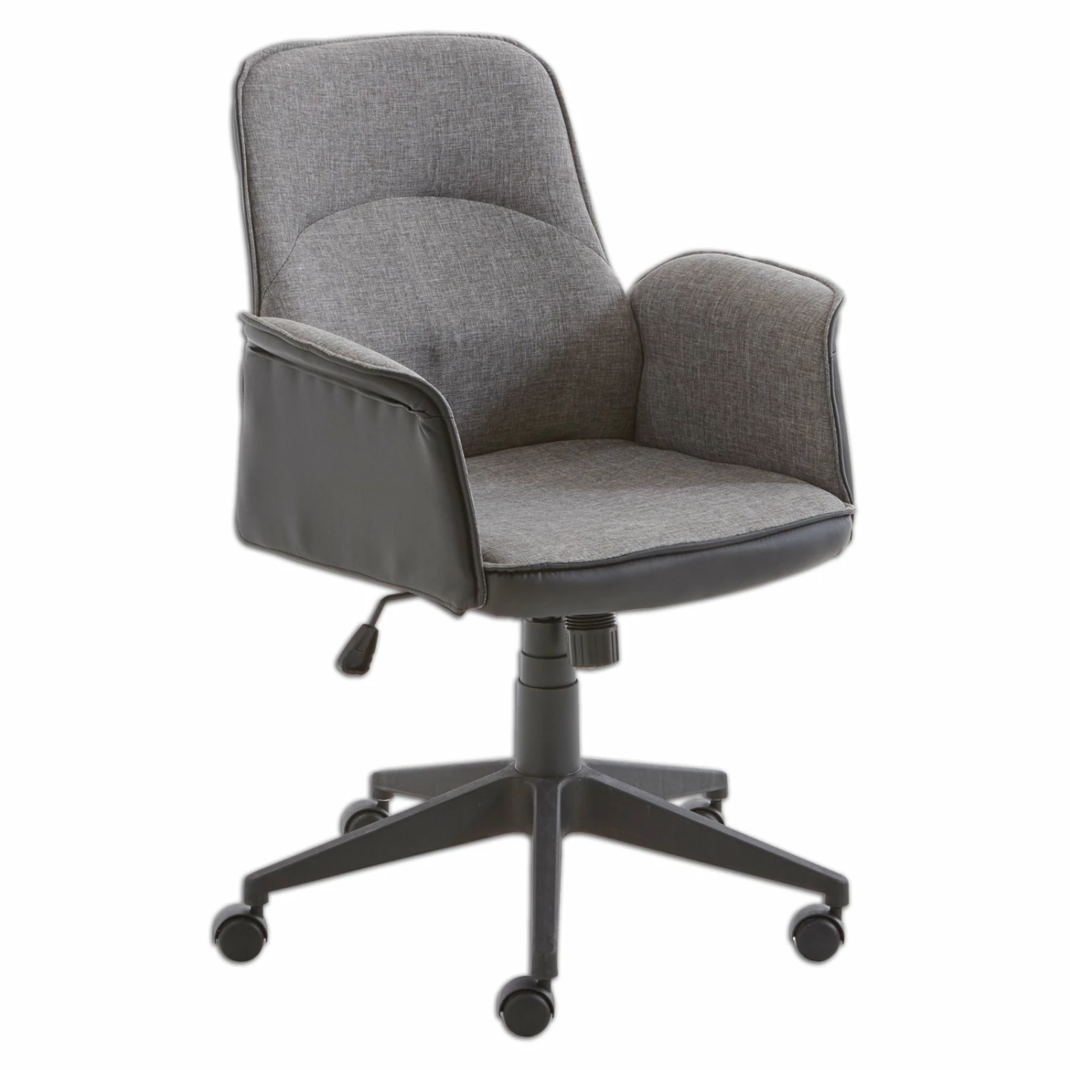 Ein edles Stück, erhalten Sie mit diesem Drehstuhl in Grau und Schwarz. Denn die Kombination von einer Schalen-Innenseite in einem melierten Stoff, der aus strapazierfähigem Polyester besteht, mit einem Außenbereiche, der aus Kunstleder in durchgehender Farbe gehalten ist, bringt Stil in Ihr Büro. Die Sitzhöhe ist verstellbar, und kann Ihrer Körpergröße stufenlos angepasst werden. Sitzfläche und Rücken sind zudem gepolstert, was den Komfort natürlich unterstützt.