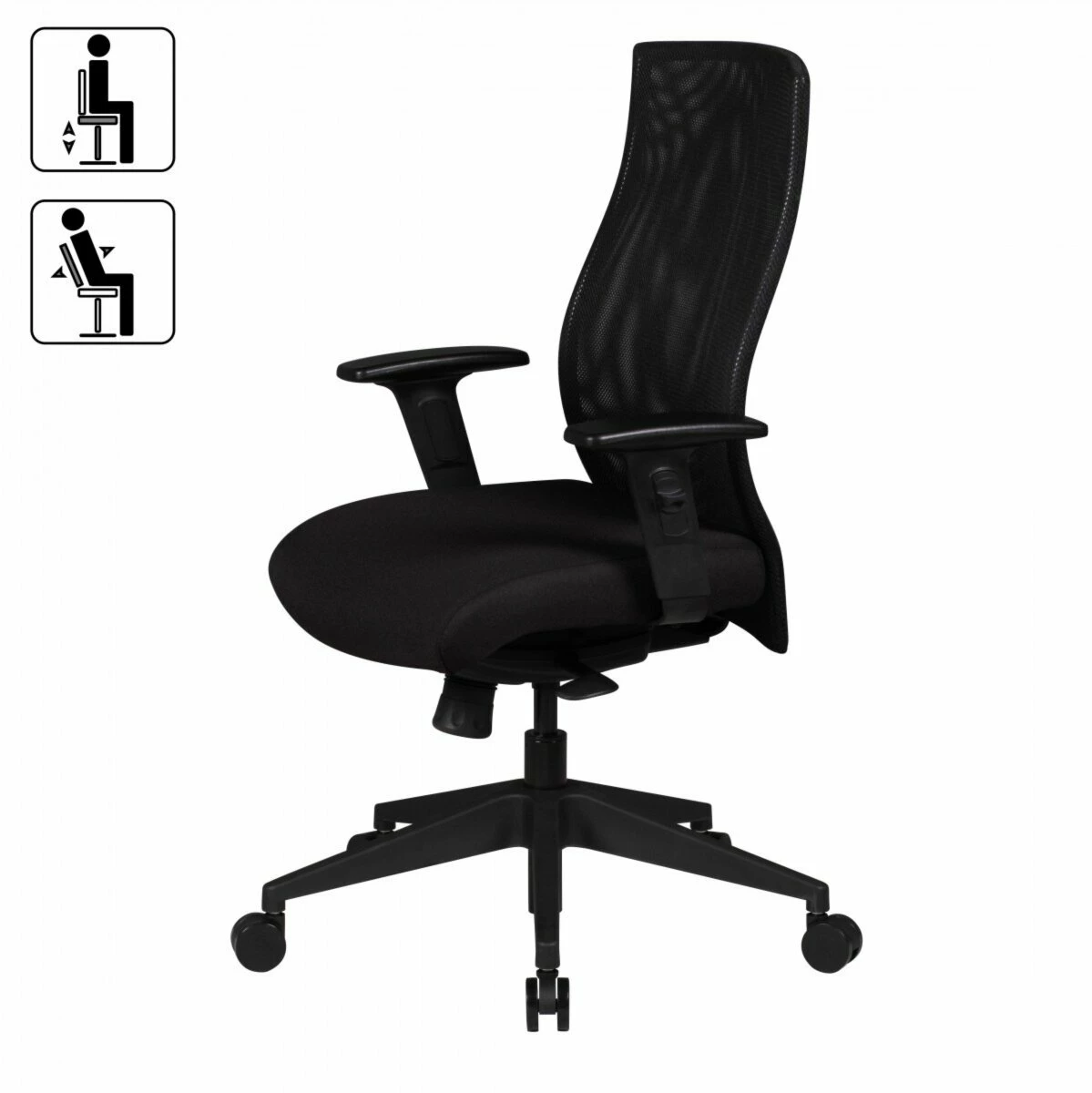 - 7-stufig höhenverstellbare Armlehnen mit Softpadauflagen
