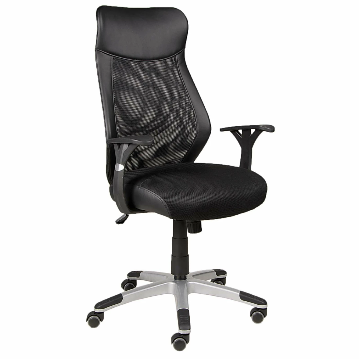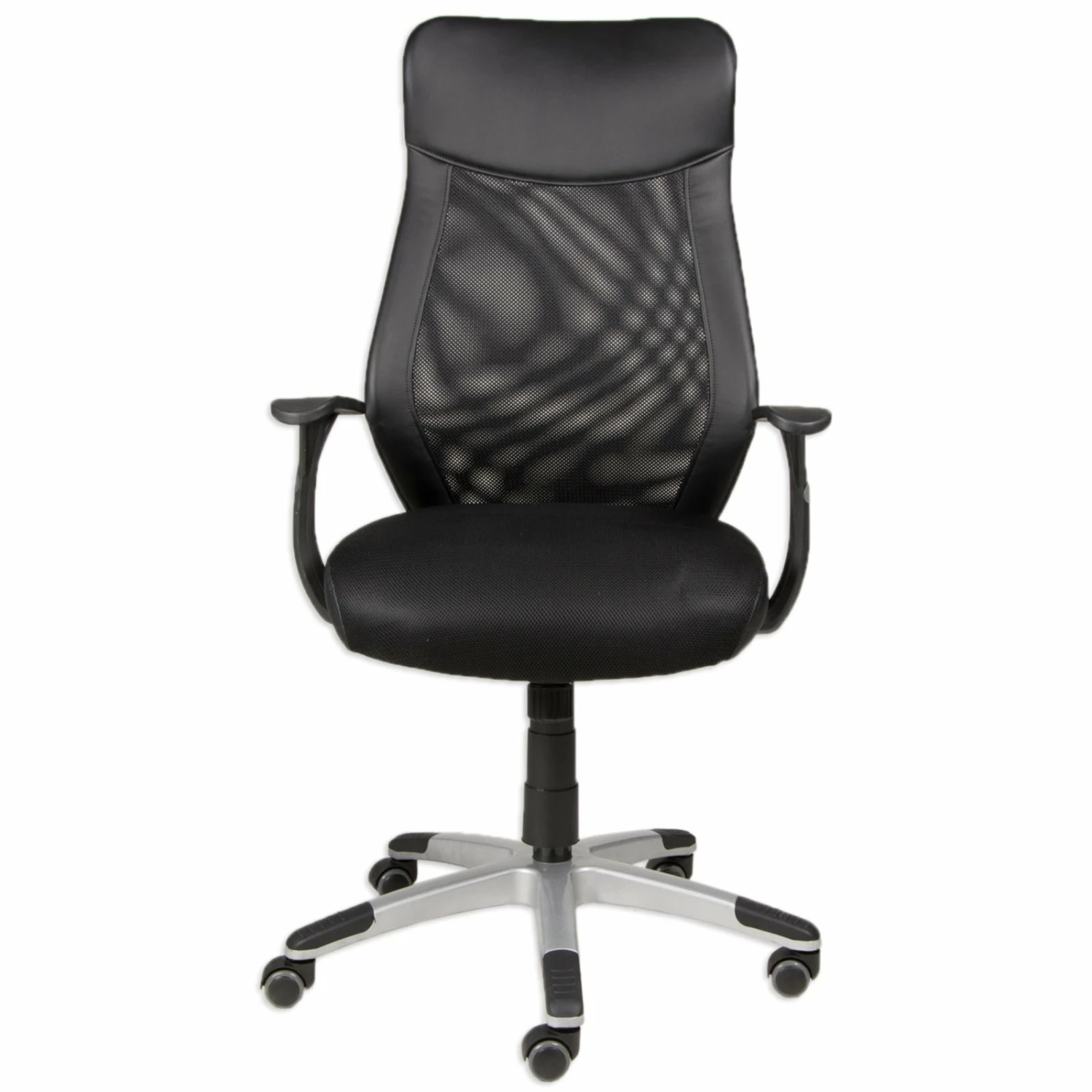 Gemütlich und praktisch ist dieser Drehstuhl. Er ist mit wunderschönem Kunstleder in Schwarz bezogen und hat am Rücken und Sitze jeweils eine Netzaussparung. Die Sitzschale ist mit Taschenfederkern gepolstert, was für eine gute Anpassung an Ihre Sitzposition sorgt und zusätzliche Luftzirkulation. Der Drehstuhl ist höhenverstellbar mittelsGasdruckfeder und besitzt eine Wippfunktion, die in verschiedenen Härteneinstellbar ist. Die beiden Armlehnen sind ebenfalls in Schwarz gehalten, so dass das silberfarbene Fußkreuz aus robustem Nylon auch ein optische Highlight darstellt und die moderne Erscheinung abrundet.