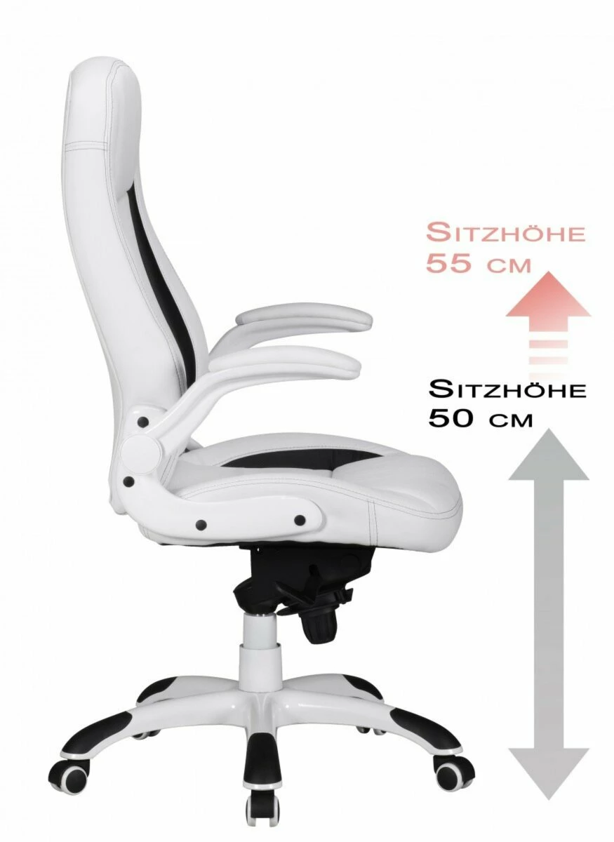 Dieser weiße Chefsessel ist nicht nur ein wahrer Hingucker durch die weiße Lederoptik, sondern auch ein sehr bequemer Begleiter im Büro! Durch die 5-Stufen-Wippmechanik und Sitz- und Armlehnenverstellung finden Sie jederzeit die für Sie angenehme Sitzposition.