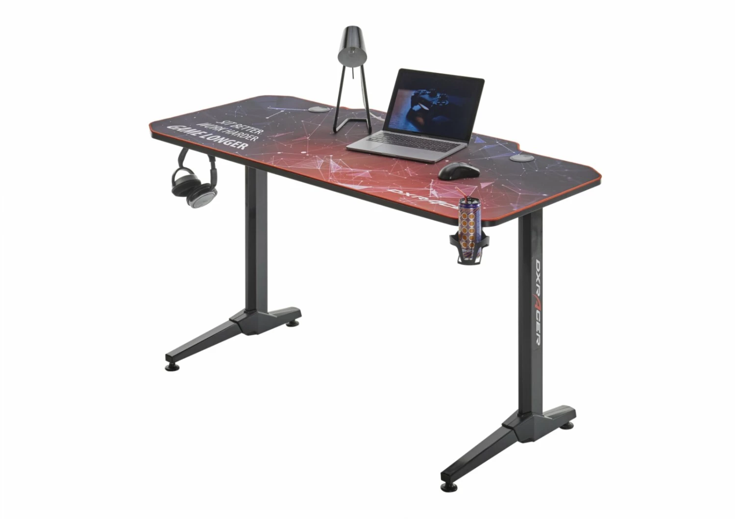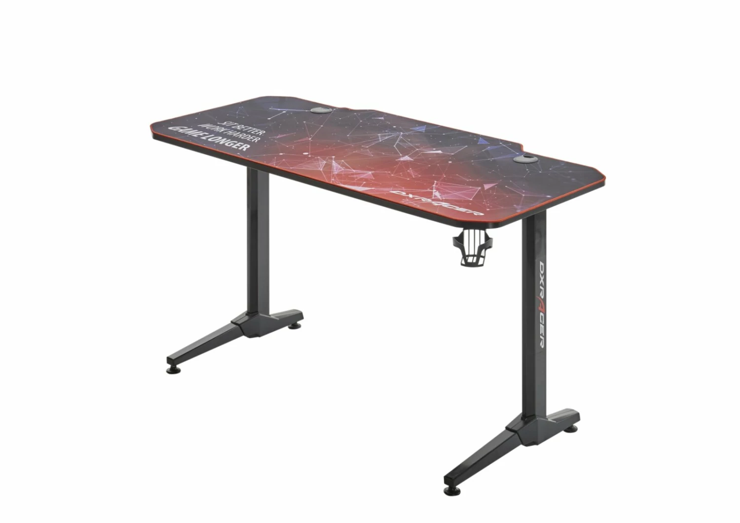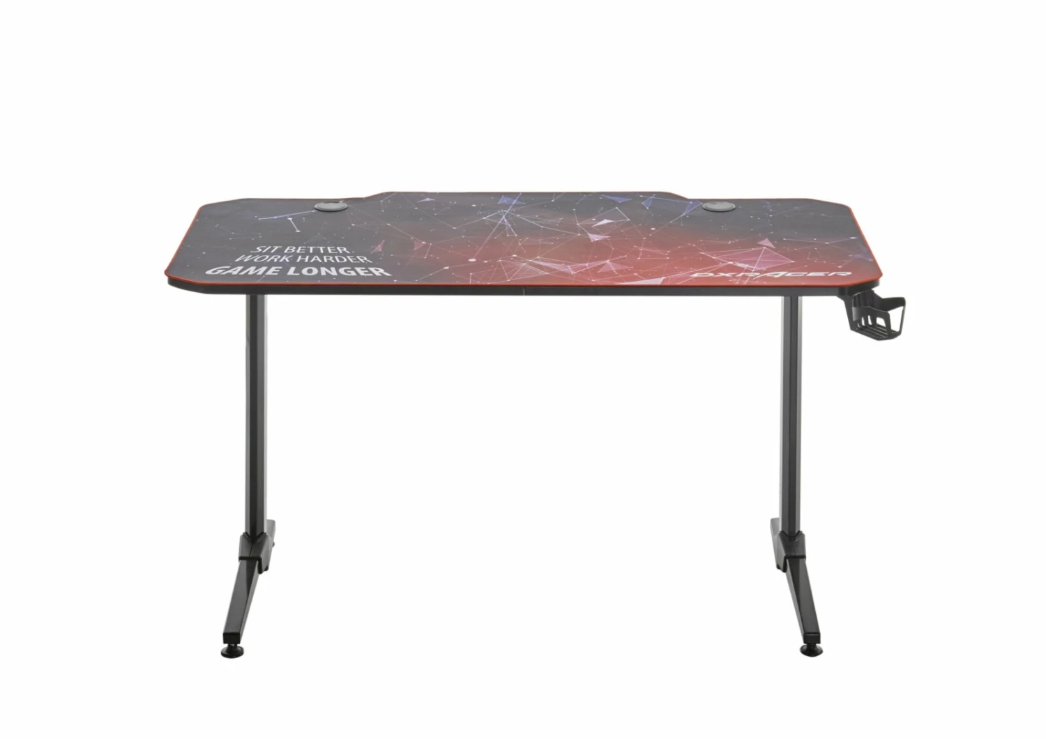 Der DXRacer Gamertisch MAX3 ist ein echter Allrounder! Er ist mit einem Getränkehalter und einem Headsethalter ausgestattet, damit diese immer Ihren Platz haben und stets griffbereit sind. Ein vollflächiges Moude-Pad ist bereits integriert und muss nicht extra angeschafft werden. Der Gamertisch überzeugt auch durch sein außergewöhnliches Design. Das T-Gestell aus Metall ist in Schwarz gehalten und die Tischplatte weist ein Galaxie-Motiv auf.