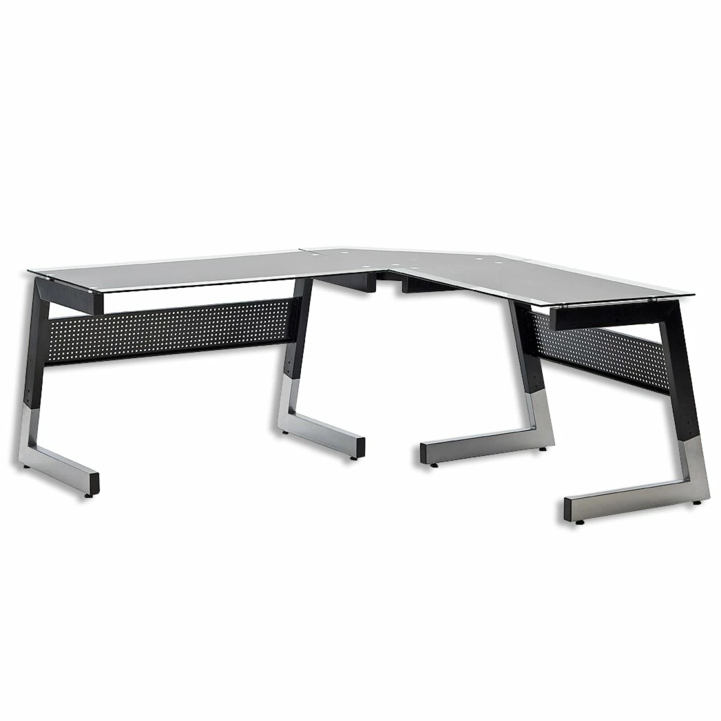 Eck-Schreibtisch – Metall – Sicherheitsglas