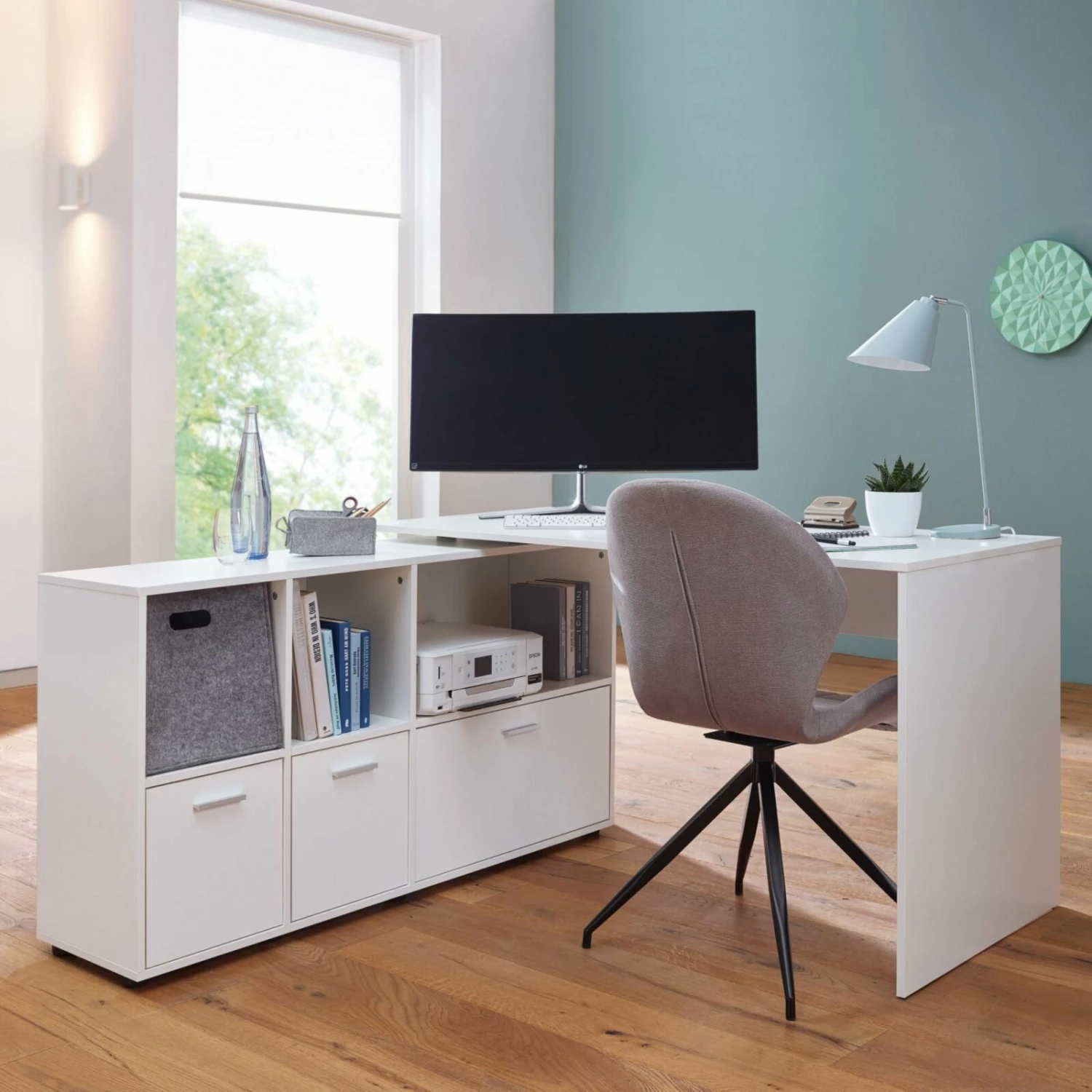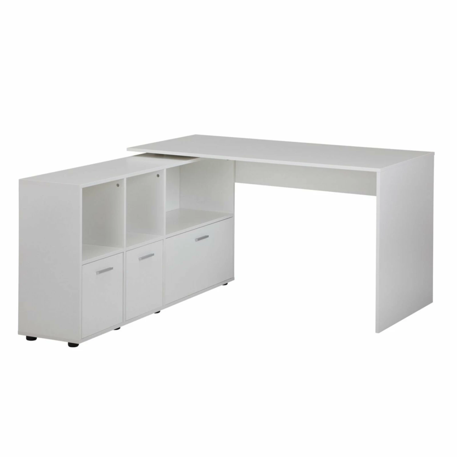 Der Eckschreibtisch in Weiß ist verstellbar und verfügt über reichlich Stauraummöglichkeiten und Ablageflächen, sodass du dir keine Sorgen mehr machen musst, wo du deine Utensilien unterbringst.