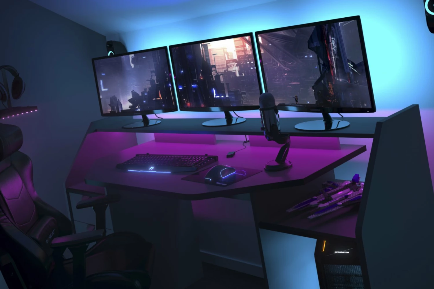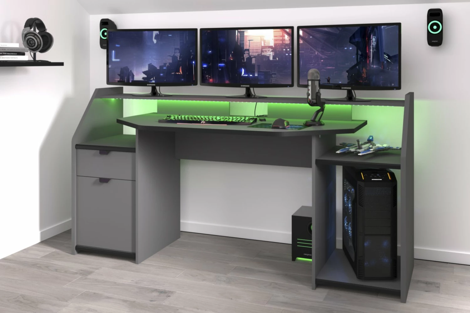 Gamertisch – grau-schwarz – mit Beleuchtung – 180 cm