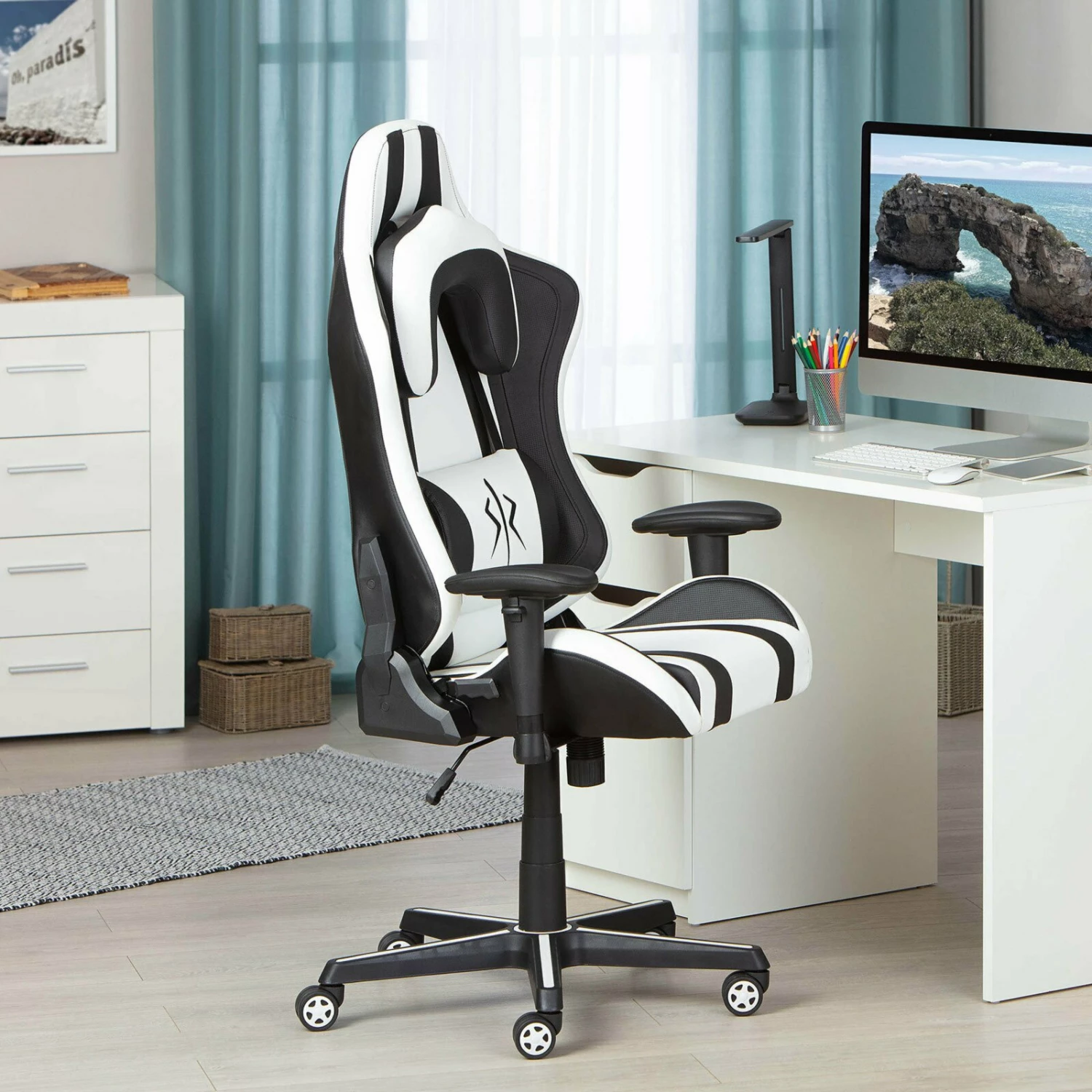 Gaming-Stuhl – schwarz-weiß – höhenverstellbar