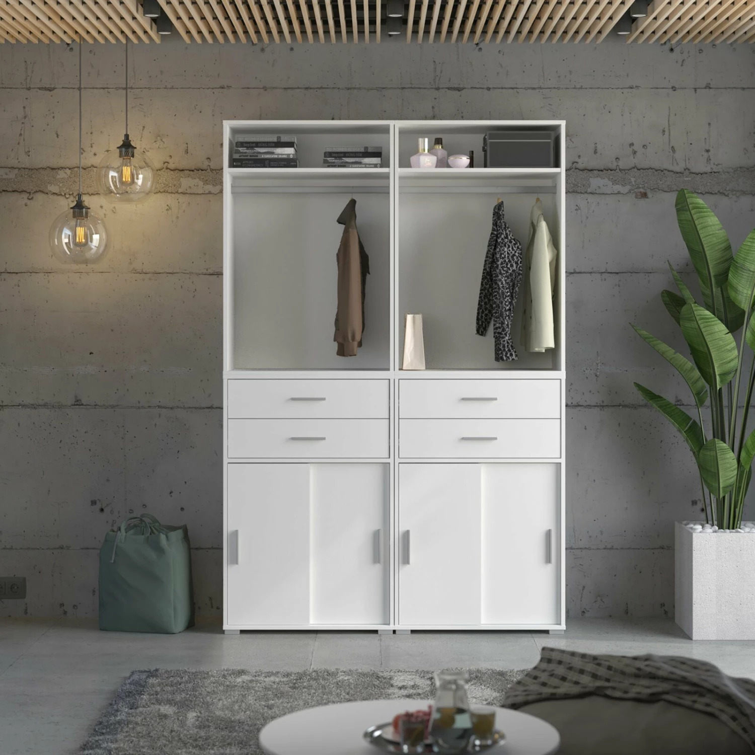 Der Garderobenaufsatz in Weiß eignet sich hervorragend um Schränke mit einer 70er Breite in der Höhe zu erweitern und hohe Decken auszunutzen. Durch die Kleiderstange und den Oberboden verfügen Sie über ausreichend Platz, um Ihre täglich benötigte Kleidung wie beispielsweise Jacken zu lagern. Stellen Sie sich Ihr eigenes Schranksystem zusammen.