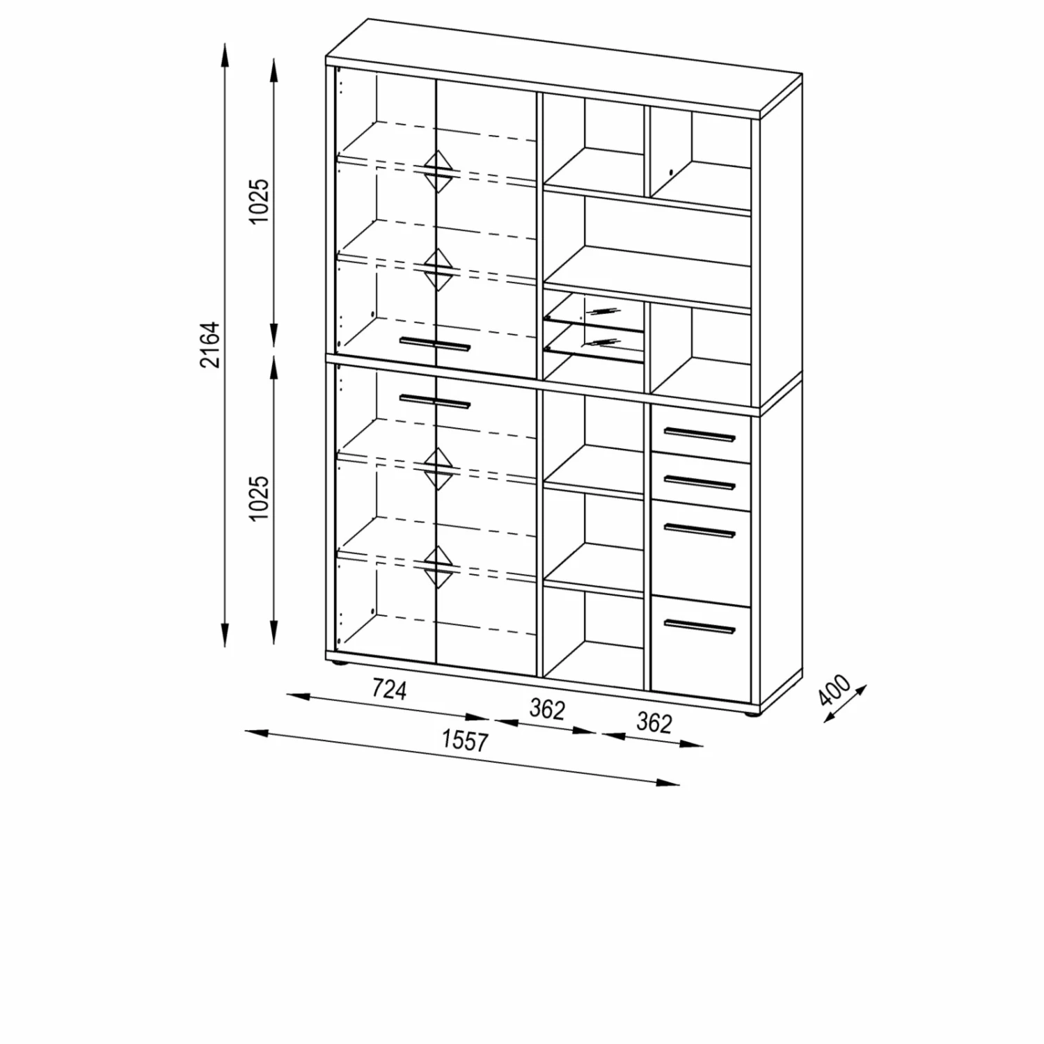 Highboard-Regal-Kombi SET+ – Eiche natur – 156 cm