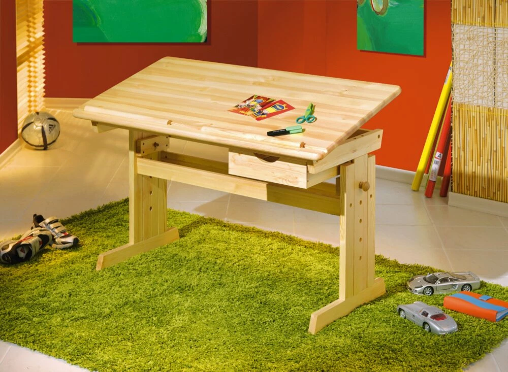 Kinderschreibtisch JULIA – Kiefer massiv – höhenverstellbar – 109×55 cm