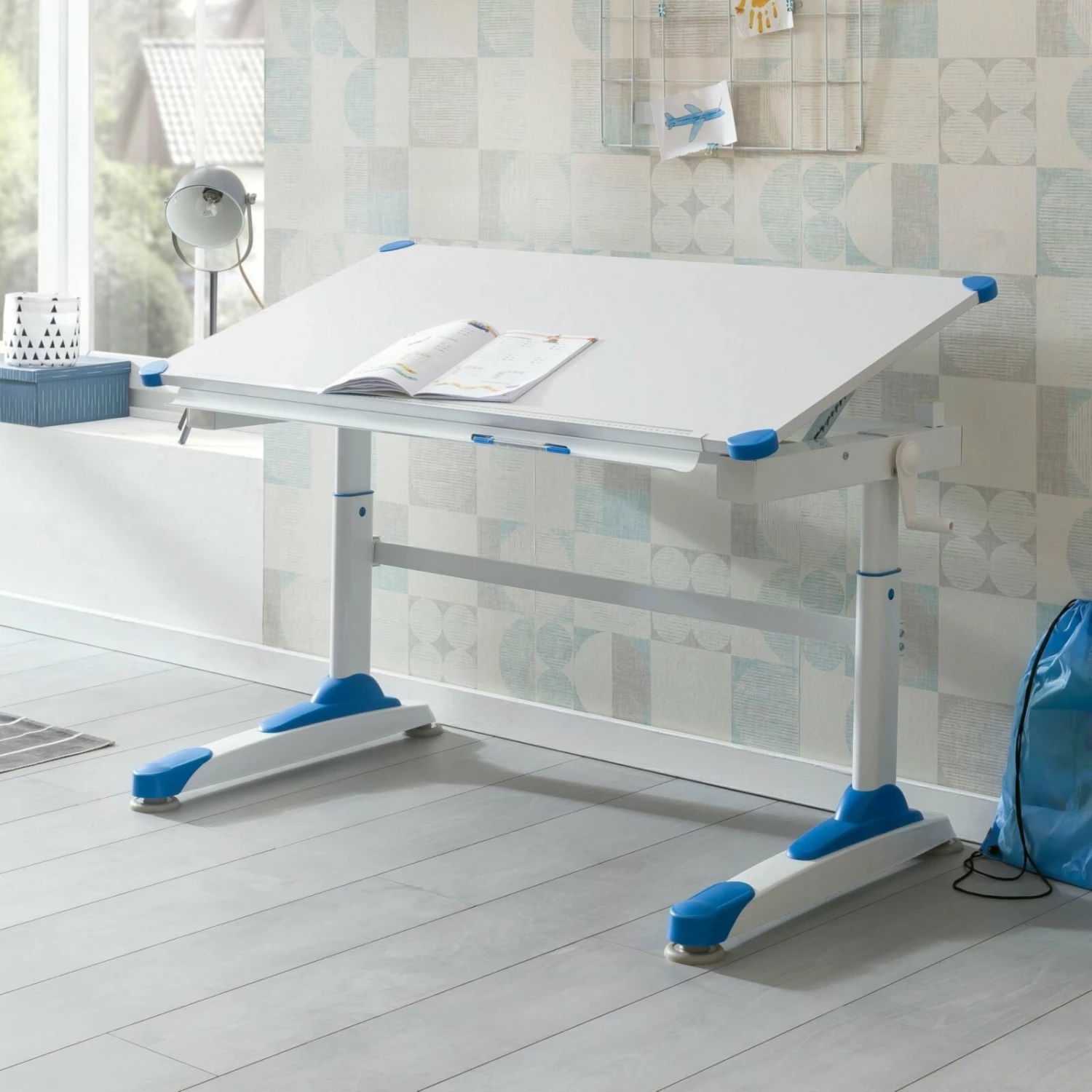 Kinderschreibtisch – weiß-blau – stufenlos höhenverstellbar