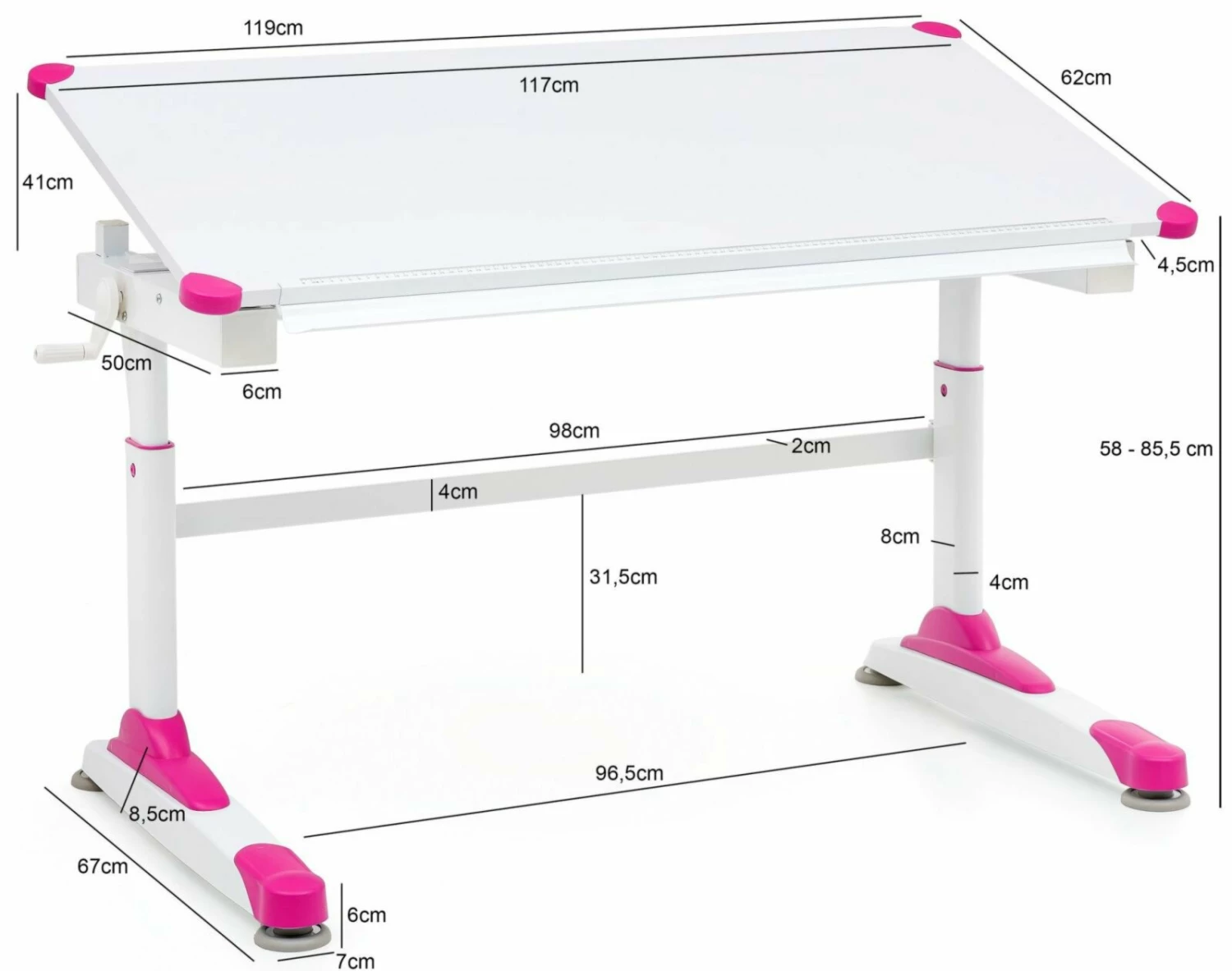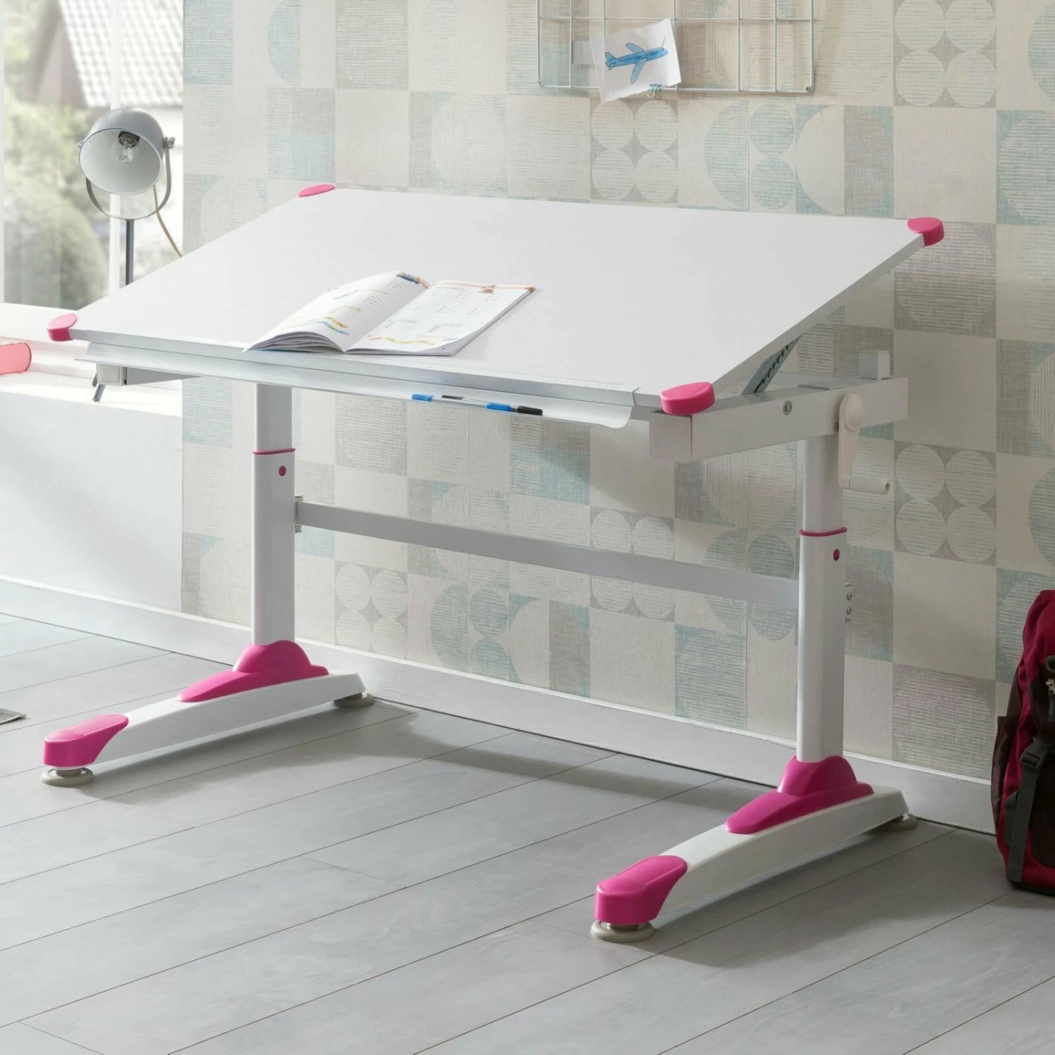 Kinderschreibtisch – weiß-pink – stufenlos höhenverstellbar