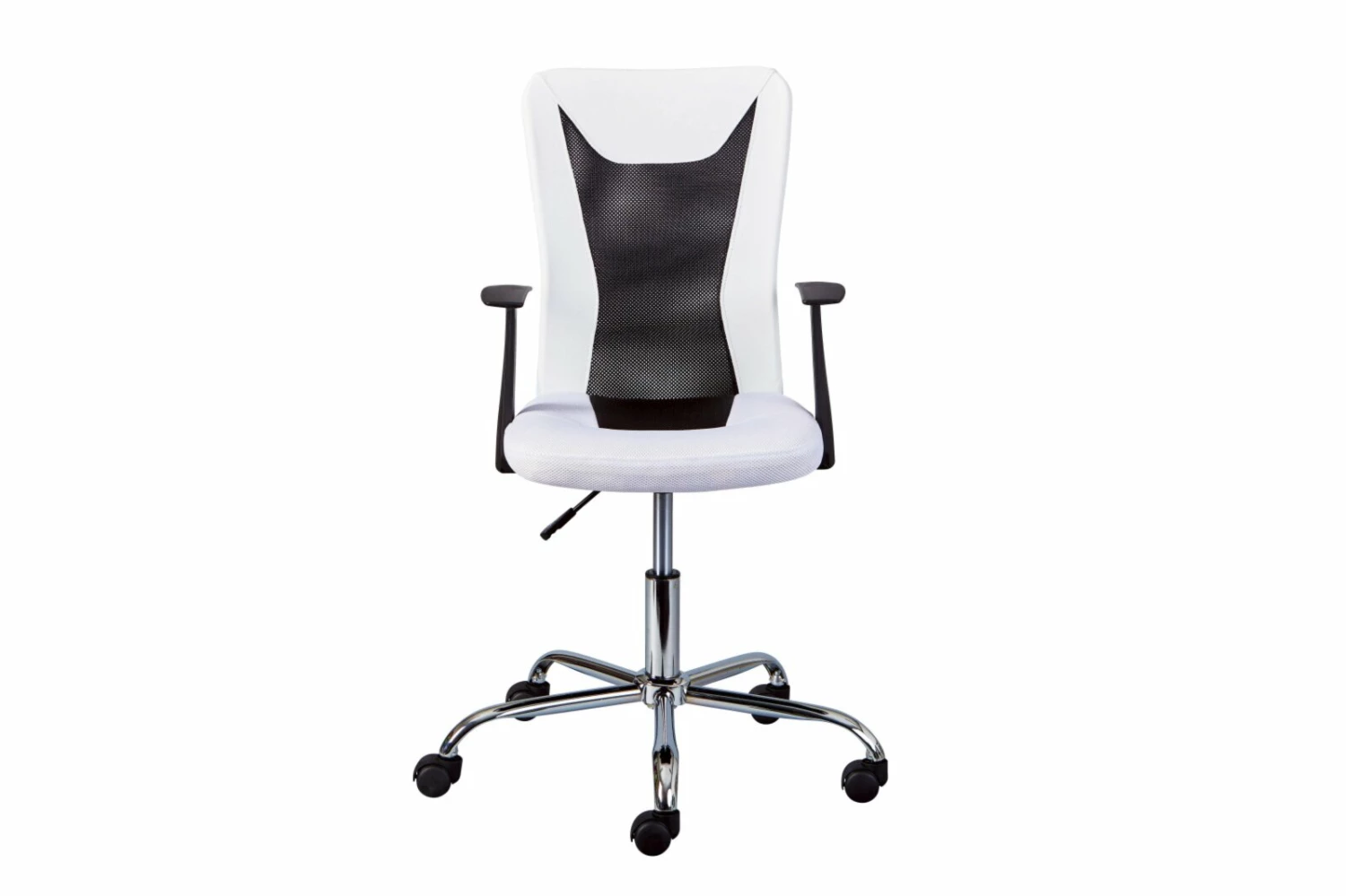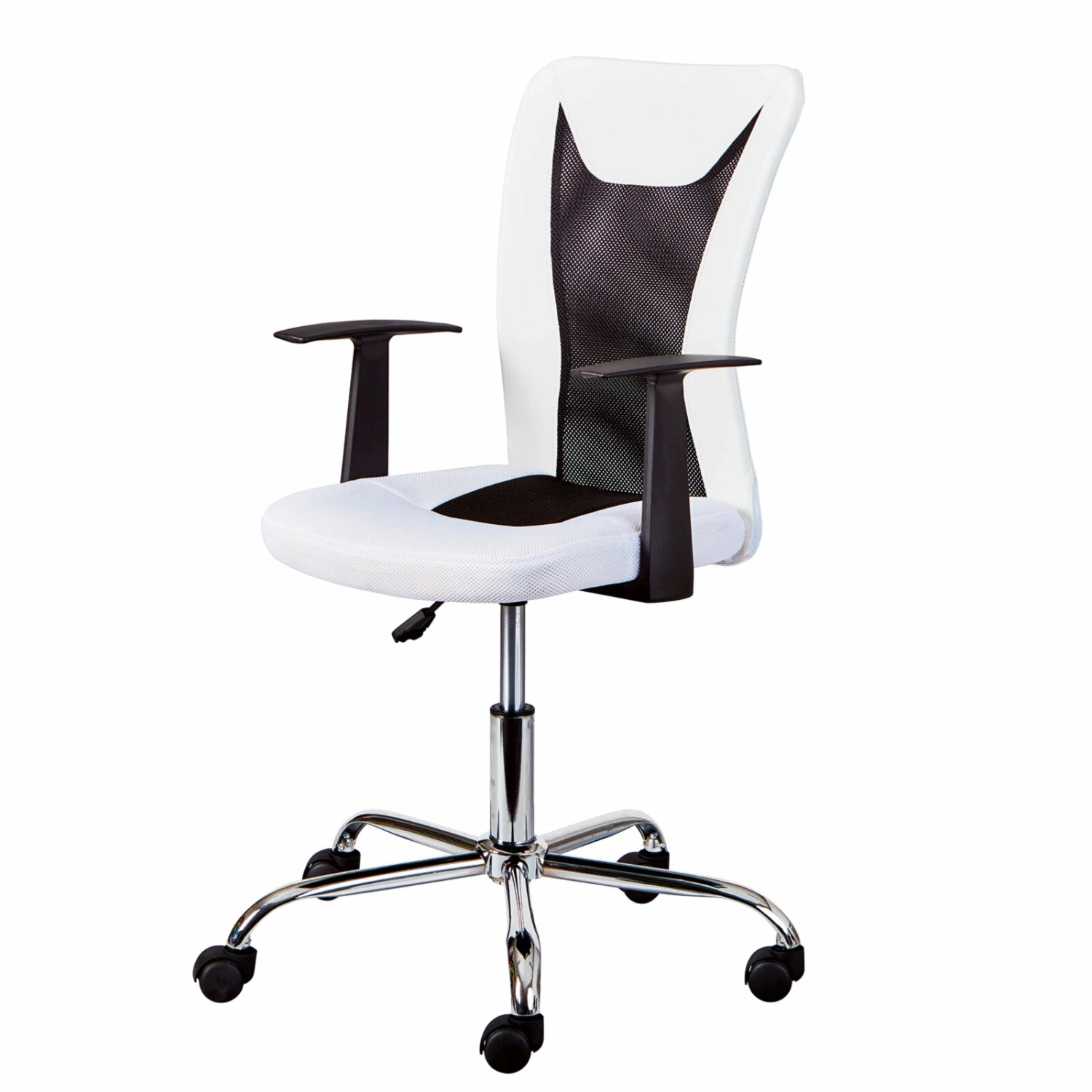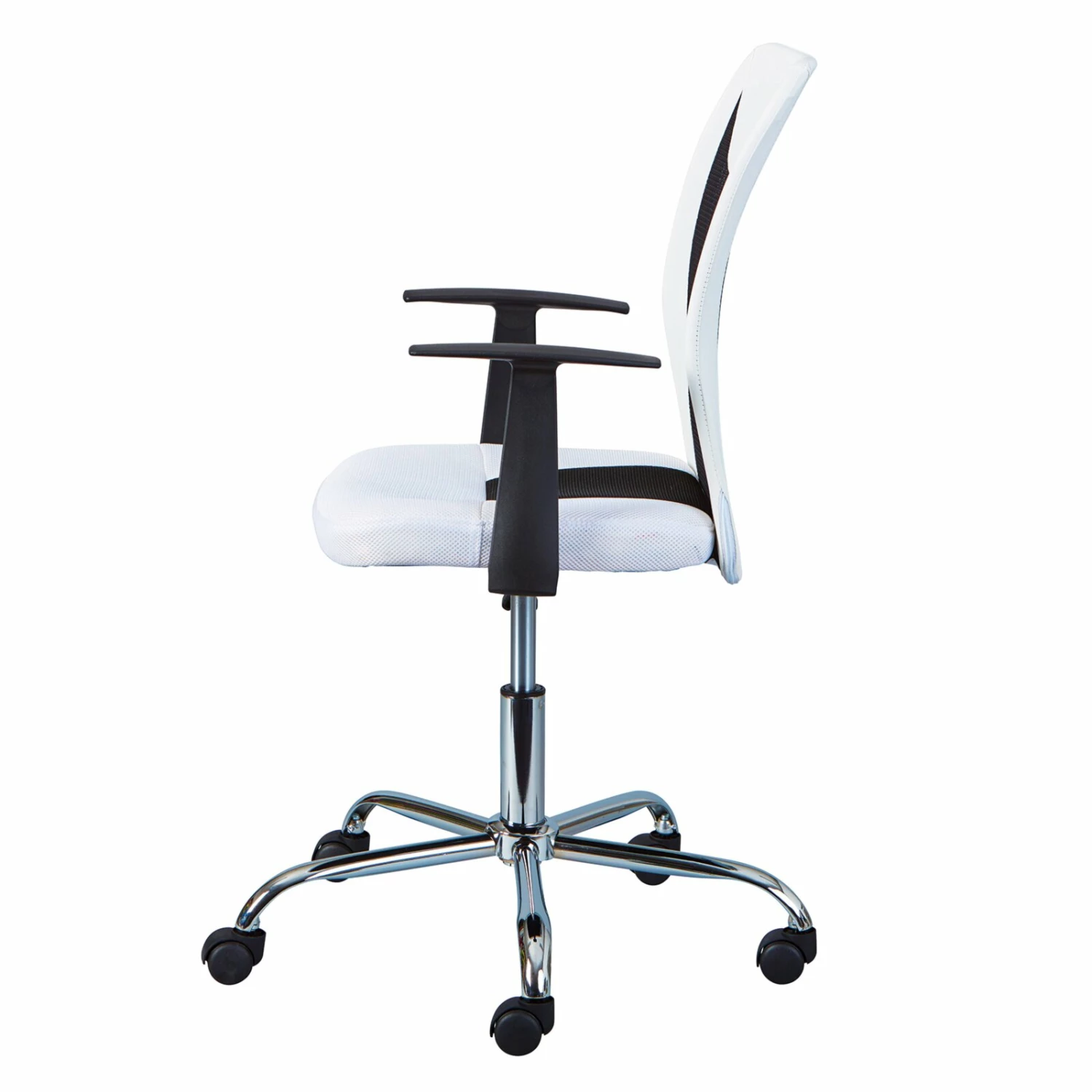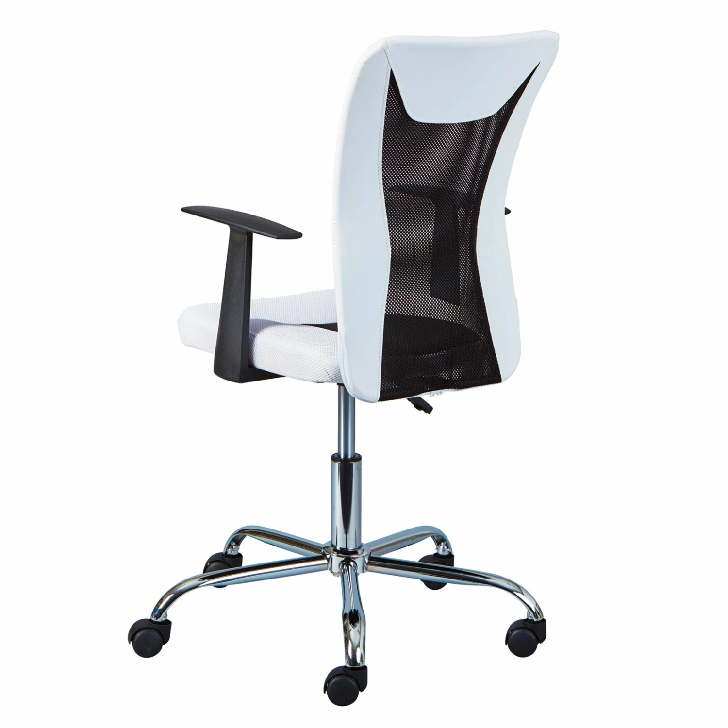 Die ergonomisch geformte Sitzfläche und Rückenlehne sorgen bei dem weißen Kinderstuhl DONNY für einen angenehmen Sitzkomfort. Der Mix aus Netzdesign und Kunstleder verleiht dem Kinderstuhl eine coole Optik.