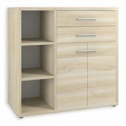 Wunderschöne Kommode mit Schubladen und Türen in Eiche natur. In diesem Möbelstück können Sie ganz praktisch und übersichtlich Ihre Büro- oder andere Utensilien aufbewahren. Die Melaminharzbeschichtung verhindert Kratzer auf der Oberfläche und mit ABS-Kanten ist der Schrank langfristig vor Abnutzungserscheinungen geschützt.