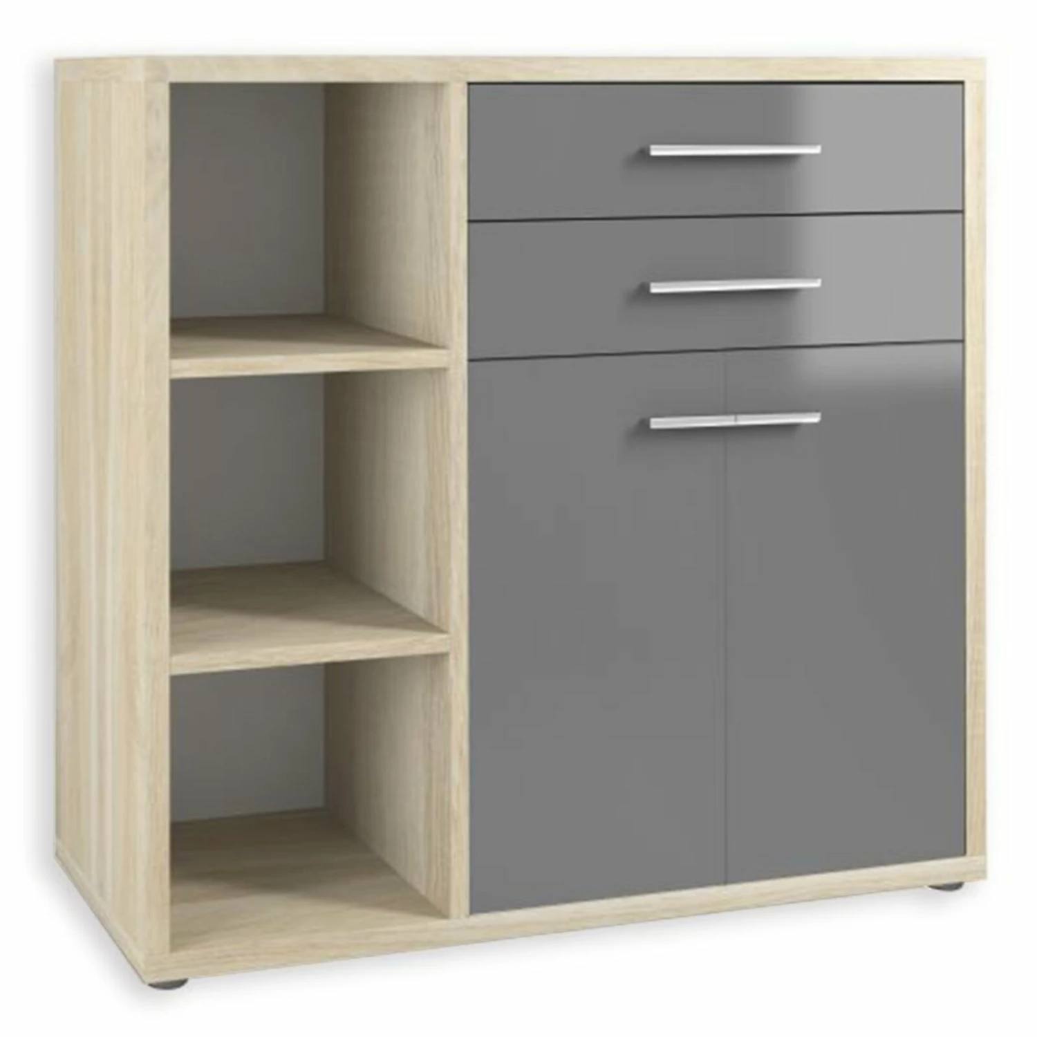Wunderschöne Kommode mit Schubladen und Türen. In diesem Möbelstück können Sie ganz praktisch und übersichtlich Ihre Büro- oder andere Utensilien aufbewahren. Die Melaminharzbeschichtung verhindert Kratzer auf der Oberfläche und mit ABS-Kanten ist der Schrank langfristig vor Abnutzungserscheinungen geschützt.