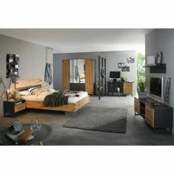 Schreibtisch – Wotan Eiche-grau metallic – 3 Schubkästen – 140 cm breit