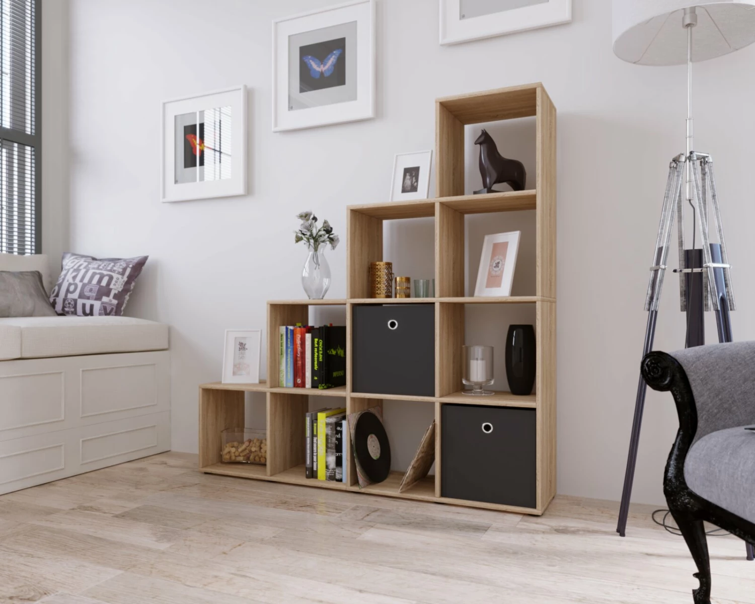 Dieses moderne Regal NAPOLI eignet sich sehr gut, um optisch den Raum zu teilen. Zum Beispiel kann es den Essbereich vom Wohnzimmer abtrennen, so dass man von der Couch nicht auf den Tisch schauen kann. Die 10 Fächer können mit Dekoration, Büchern oder persönlichen Bildern gespickt werden. Die Holzstruktur in Sonoma Eiche bringt Gemütlichkeit in Ihre vier Wände.