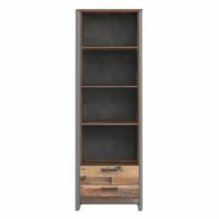 Ein cooles Regal im angesagten Industrial Style und mit reichlich Stauraummöglichkeiten. Den modernen Look erhält es durch den Mix aus Old Wood Vintage Nachbildung und Betonoptik, der in Ihrem Raum für frischen Wind sorgen wird. In zwei Schubkästen und vier offenen Fächern finden die verschiedensten Utensilien und Dekorationen Platz.