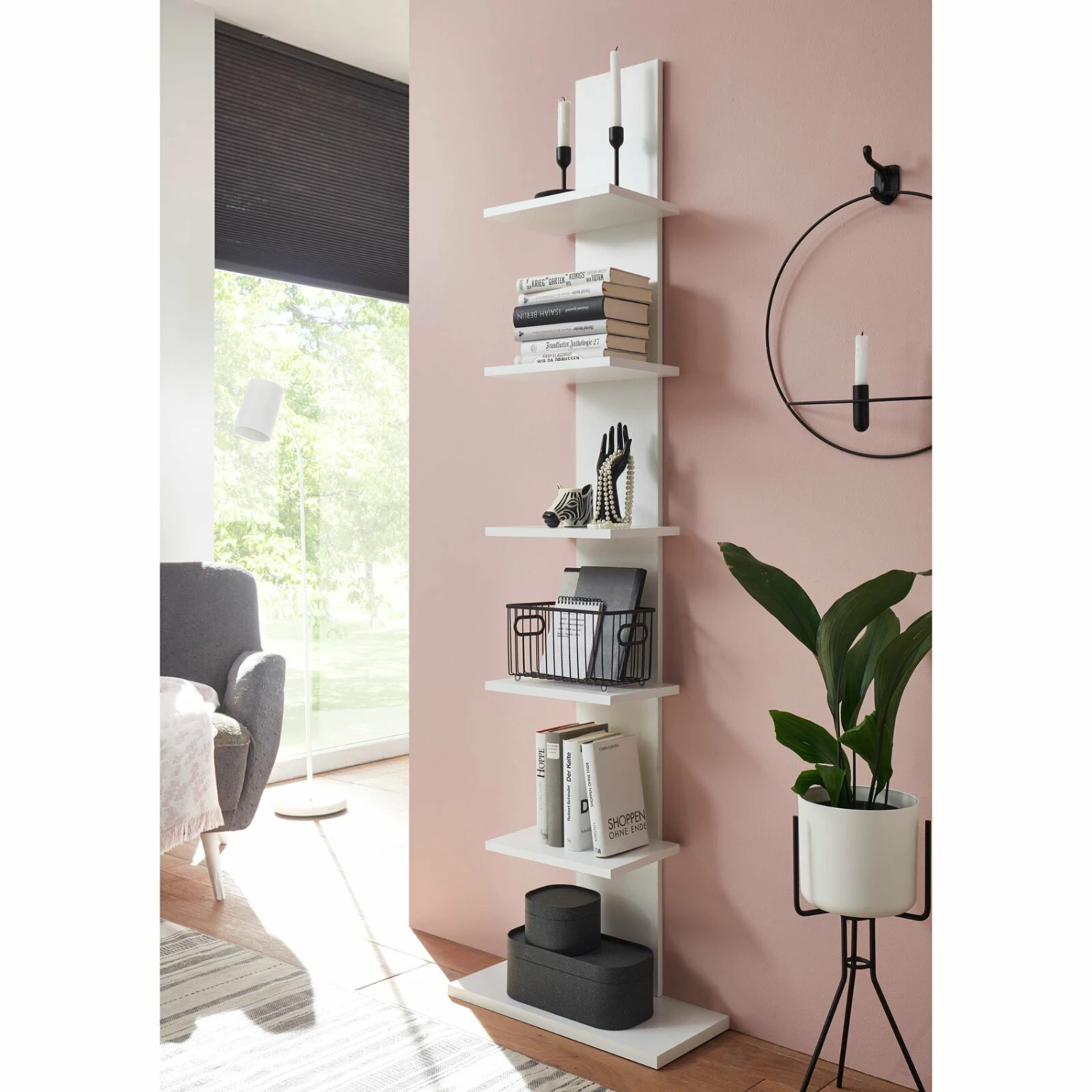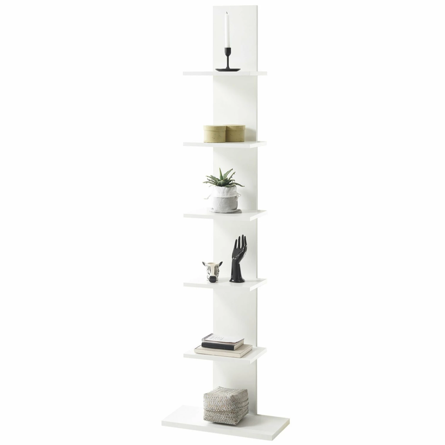Auf diesem etwa 180 Zentimeter hohen Regal kann Ihre Dekoration in Szene gesetzt werden. Die weiße Farbausführung lässt sich bestens mit den verschiedensten Einrichtungsstilen kombinieren. Das Regal kann vielseitig eingestezt werden, ob Wohnraum, Arbeits- oder Kinderzimmer.