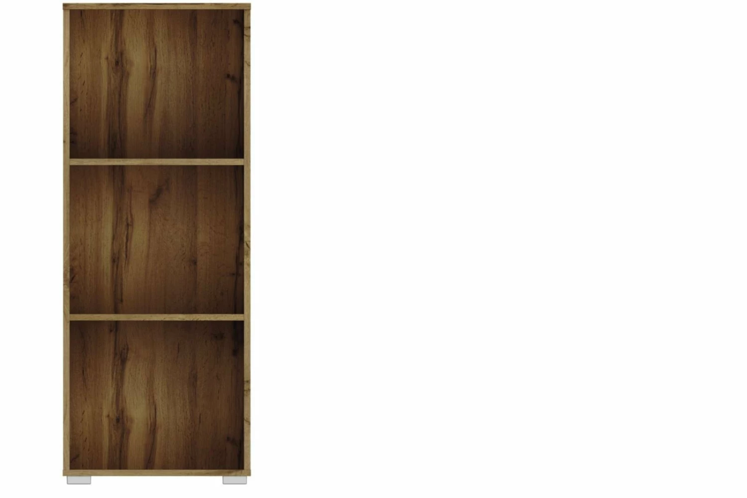 Ein offenes Regal für Spielzeug und Co. Das Standregal präsentiert sich in Eiche Wotan Nachbildung mit zwei Einlegeböden. Mit einer Breite von etwa 47 Zentimetern und einer Höhe von 119 Zentimetern bietet es einiges an Stauraum.