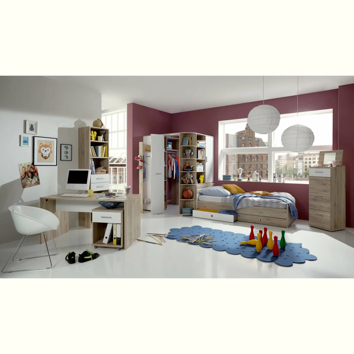Rollcontainer mit einem Schubkasten oberhalb und großem offenen Fach unten. Die San Remo Eiche Optik lässt sich vielseitig kombinieren und die Aufteilung sorgt für viel Platz. Ob unter dem Schreibtisch oder einfach als Beisteller – dieser Rollcontainer hat ein praktisches Format und lässt sich über das 4-Rollen System flexibel verstellen.