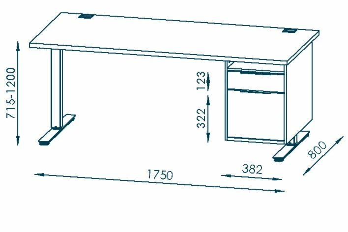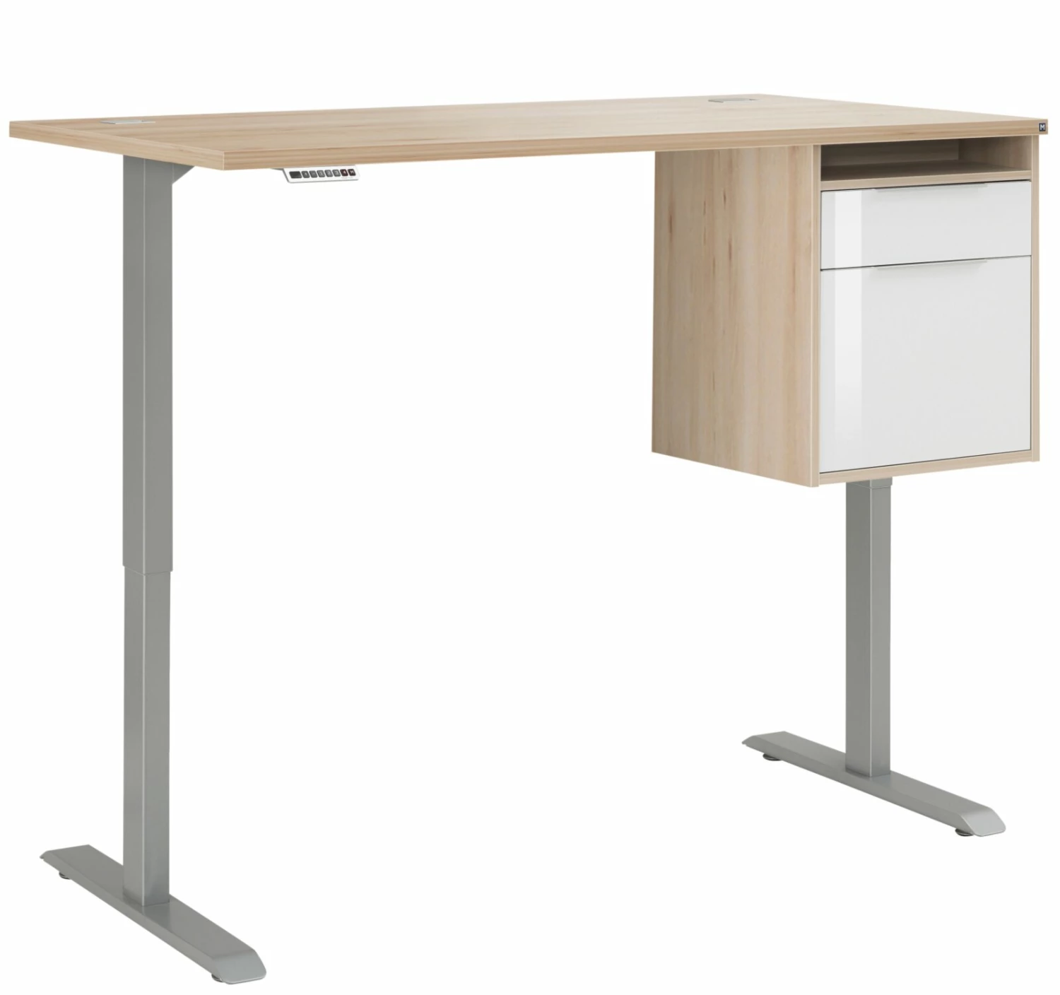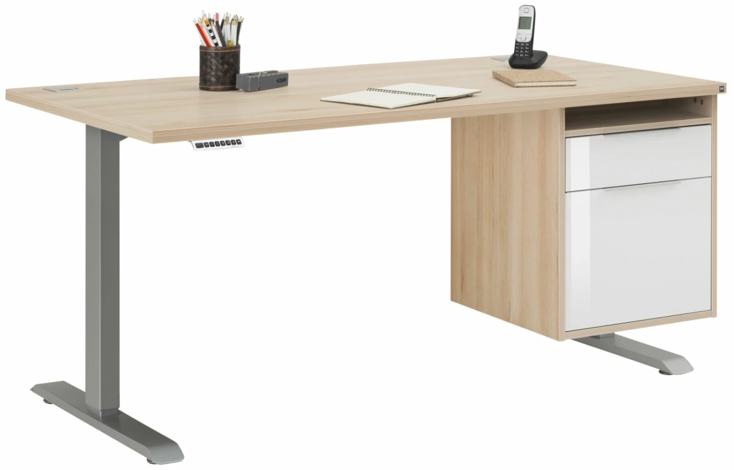 Schreibtisch EDJUST – Edelbuche – höhenverstellbar – Container rechts – 175×80 cm