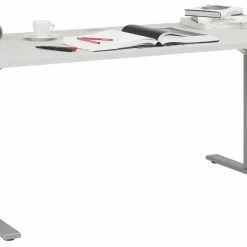 Schreibtisch EDJUST – platingrau – höhenverstellbar – 155×73 cm