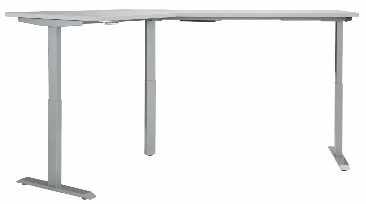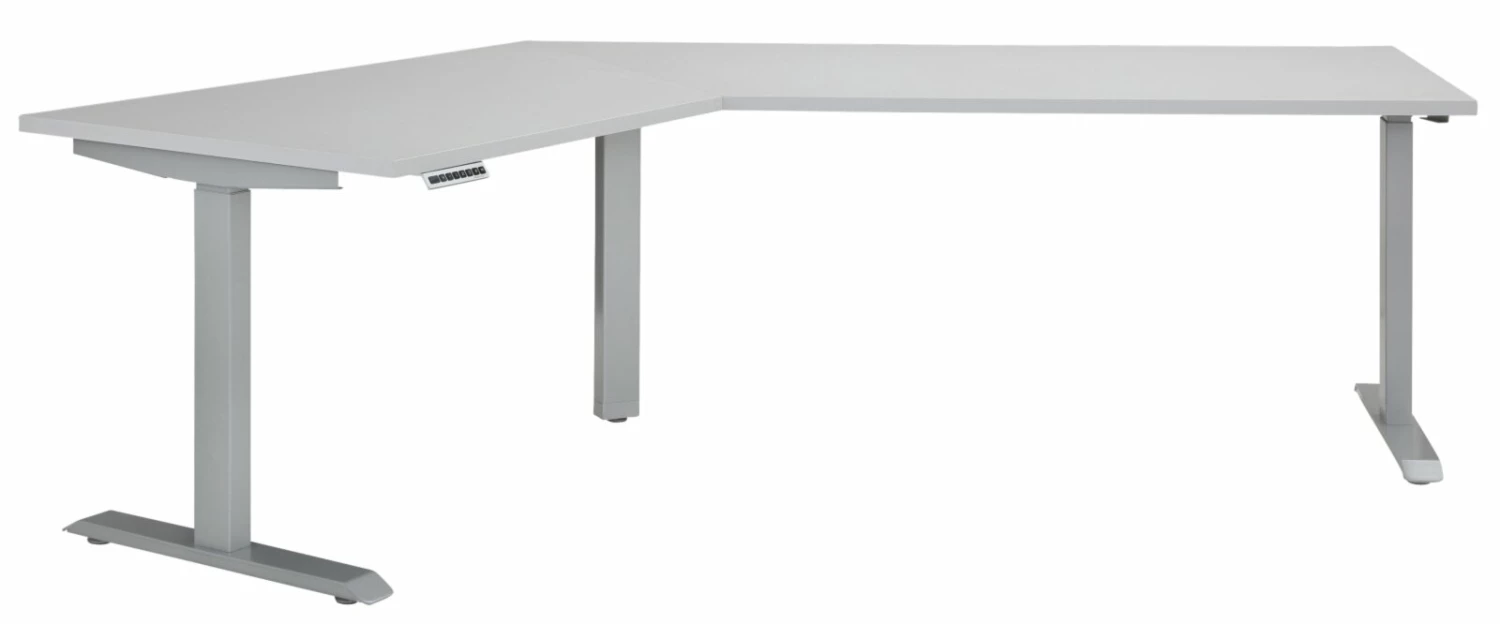 Schreibtisch EDJUST – platingrau – höhenverstellbar – 248×158 cm