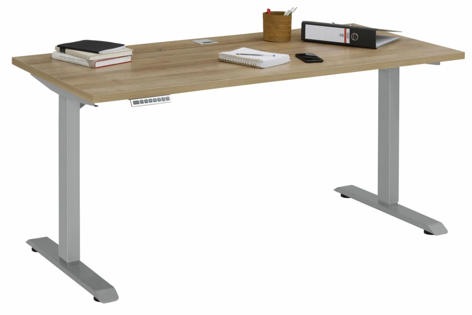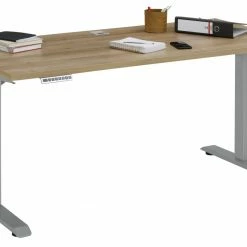 Schreibtisch EDJUST – Riviera Eiche-platingrau – höhenverstellbar – 150×80 cm