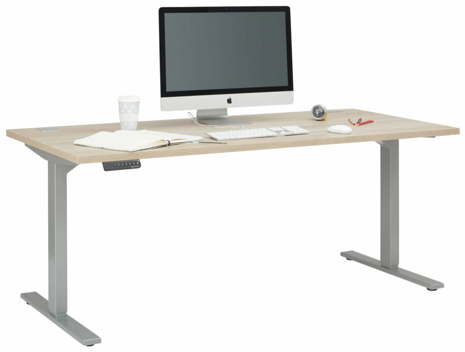 Absolut rückenschonend – der Schreibtisch mit elektrischer Höhenverstellung. Per Knopfdruck setzt sich das 2-Motoren-Gestell in Bewegung und zeigt Ihnen auf einem kleinen Display die genau Höhe an. Arbeiten Sie im Sitzen oder im Stehen und speichern mit der Memoryfunktion bis zu vier verschiedene Einstellungen um lästiges neuarretieren zu verhindern. So haben Sie im handumdrehen die perfekte Arbeitshöhe. Optisch fügt er sich in viele Wohnstile ein.