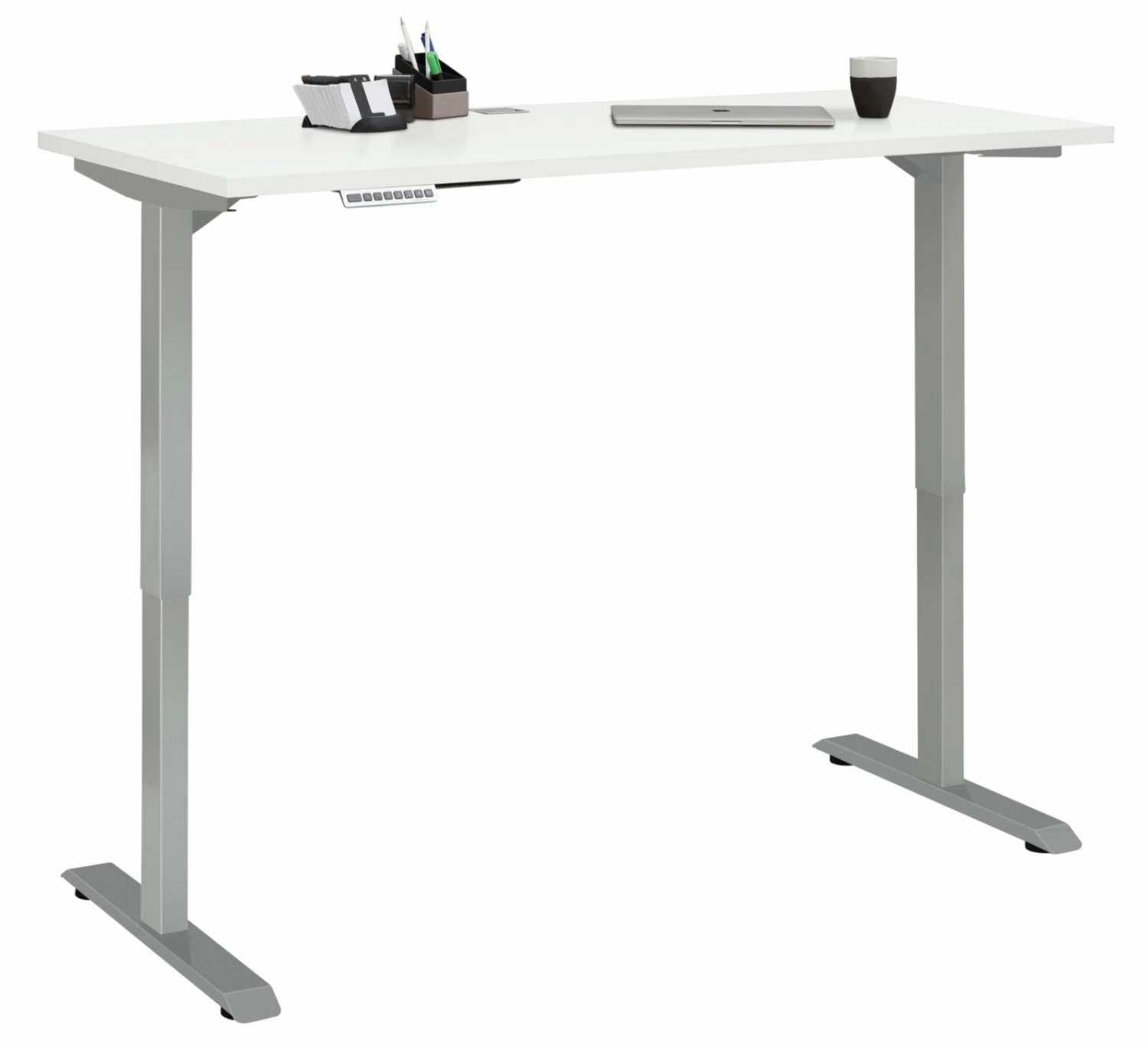 Schreibtisch EDJUST – weiß matt-platingrau – höhenverstellbar – 150×80 cm
