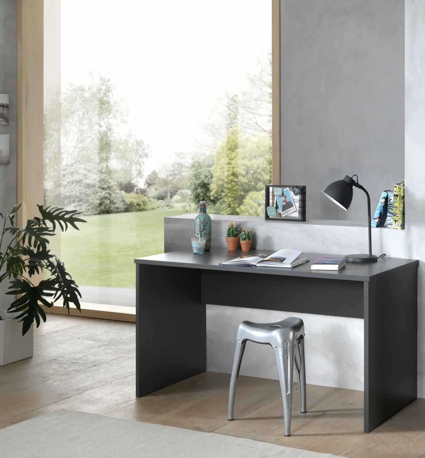 Der Schreibtisch London ist perfekt für Groß und Klein. Der Schreibtisch ist in der Farbe Anthrazit lackiert und zeichnet sich durch eine große Arbeitsfläche von ca. 140 x 65 cm, bei einer Arbeitshöhe von ca. 75 cm aus. Durch das schlichte und gradlinige Design kann der Schreibtisch mit vielen Einrichtungsstilen kombiniert werden.