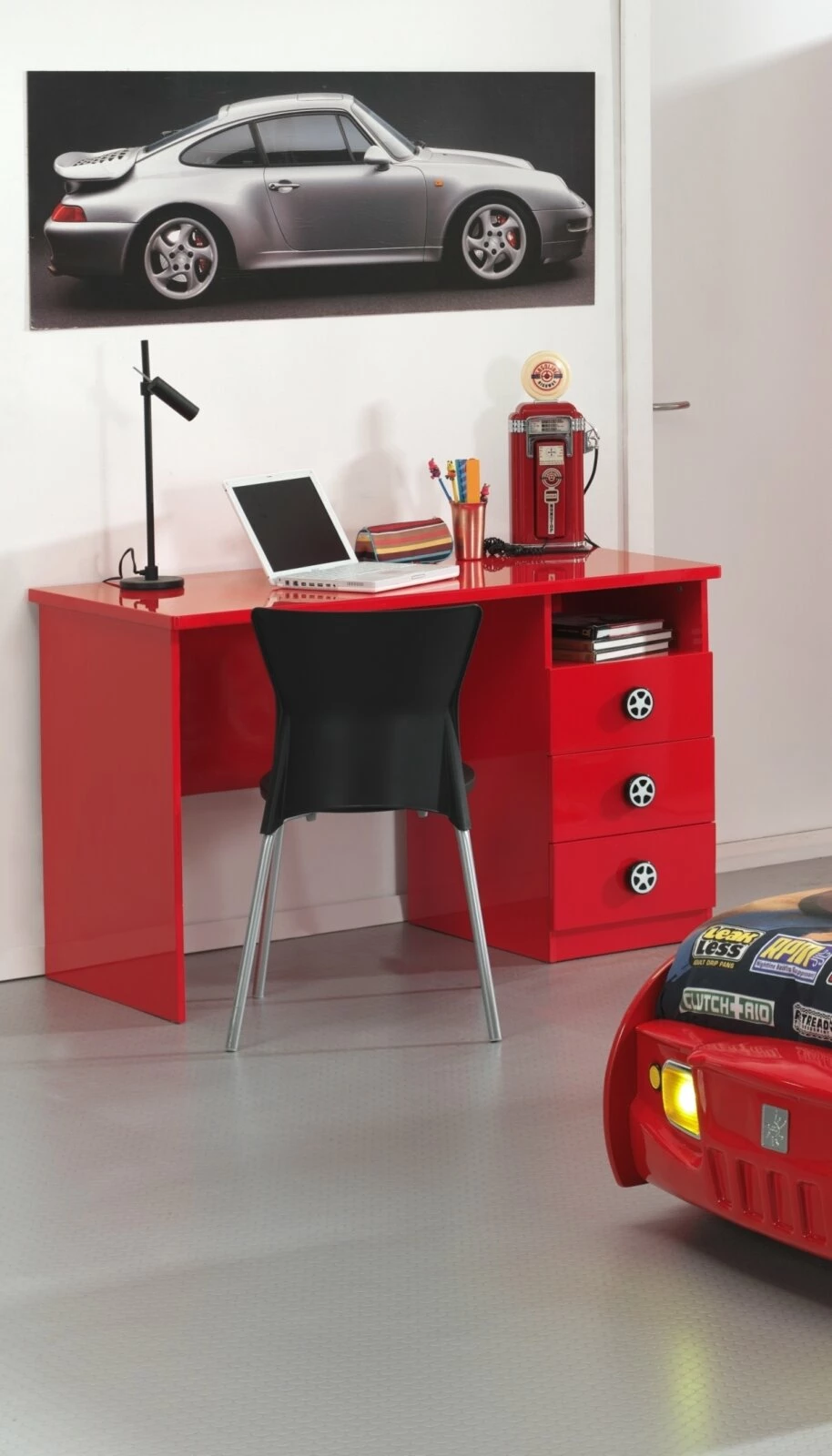 Der Schreibtisch MONZA bietet mit drei Schubkästen und einem offenen Fach viel Stauraum. Auf der 120 x 60 cm großen Arbeitsfläche ist genug Platz um Hausaufgaben zu machen oder sonstige Arbeiten zu erledigen. Kombinieren Sie diesen Schreibtisch mit anderen Möbelstücken aus der Jugendzimmerserie MONZA.
