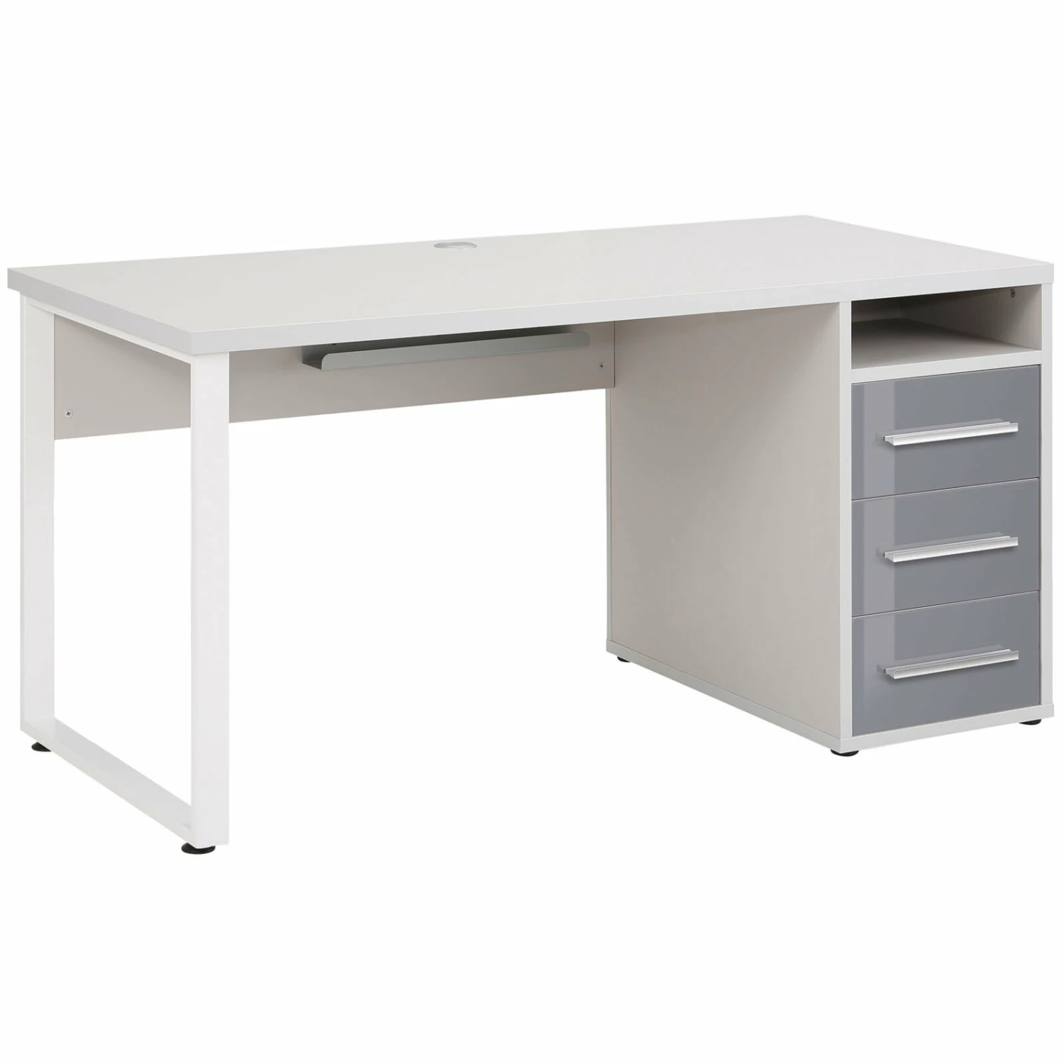 Wunderschöner Schreibtisch SET+ in Platingrau mit Grauglas abgesetzt. Drei Schubkästen und drei Ablagefächer bieten Platz für Schreibutensilien und Unterlagen. Die Oberflächen sind mit Melaminharzbeschichtung vor Kratzern geschützt und dank der Kabeldurchführung und -Ablage platzieren Sie Ihre Kabel unauffällig und sicher. Der Schreibtisch ist wechselseitig montierbar und lässt sich somit in jedem Arbeitszimmer aufstellen.