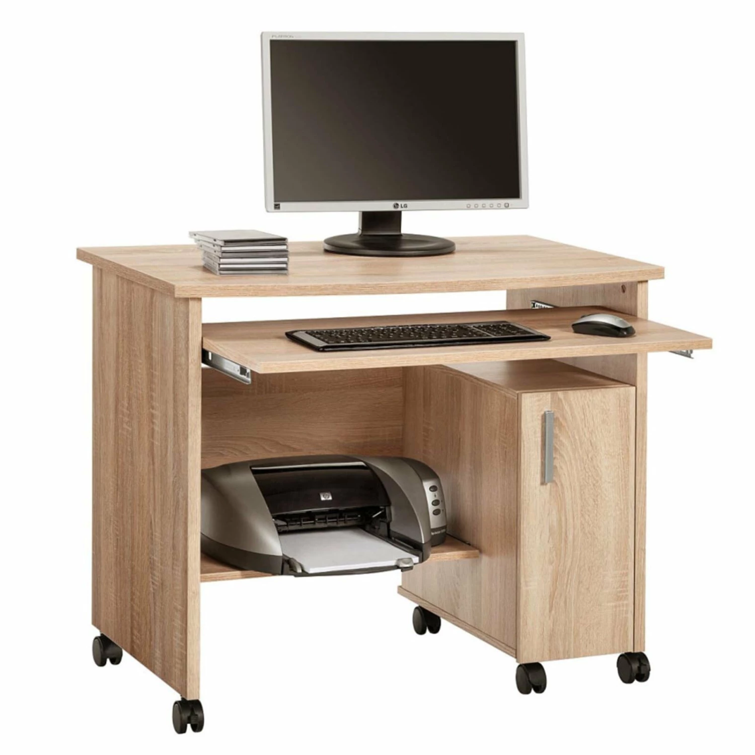 Dieser platzsparende Computertisch im modernen Farbton Sonoma Eiche Nachbildung ist mit seinen praktischen Rollen schnell in die richtige Position gebracht. Dieses Platzwunder bietet ein optimales Platzangebot auf kleinsten Raum.