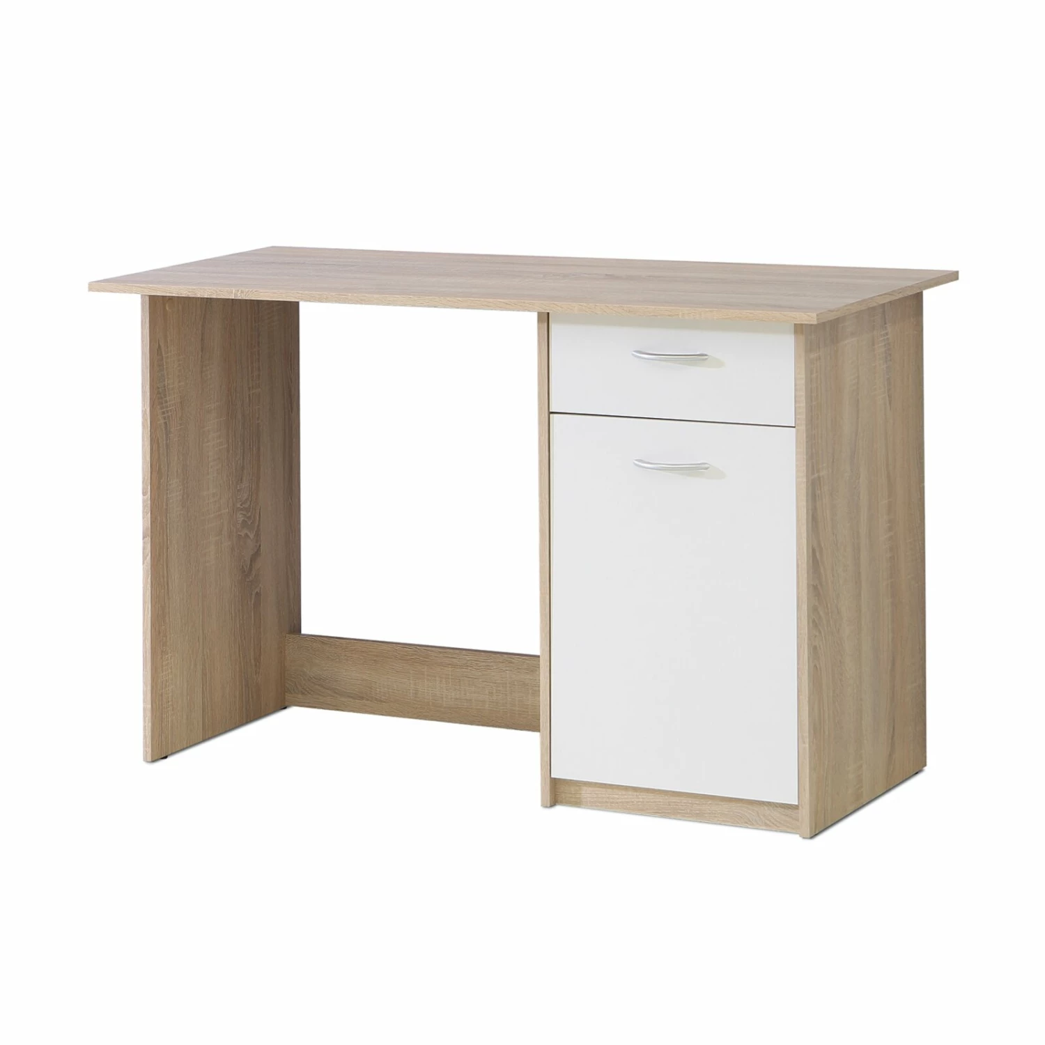 Der rechteckige Schreibtisch aus Holz hat einen Korpus in Sonoma Eiche Nachbildung. Ein Schubkasten und eine Tür bieten zusätzliche Ablagefläche, so haben Sie Stift, Papier und sonstige Büromaterialien schnell griffbereit.