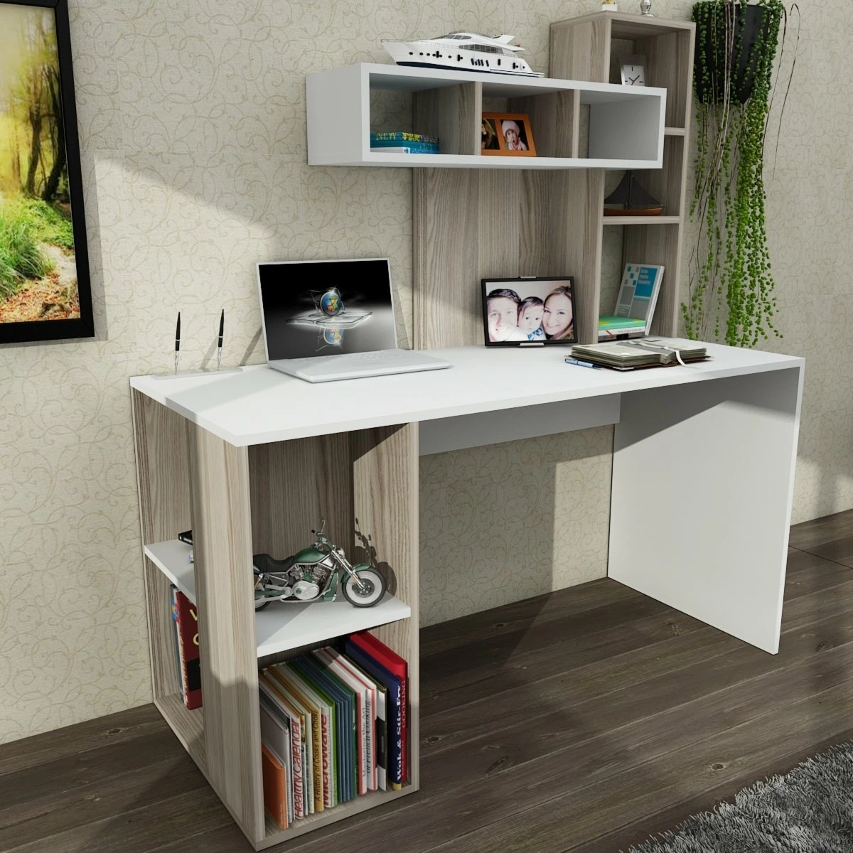 Schreibtisch – weiß-cordoba – mit Regal – 140 cm
