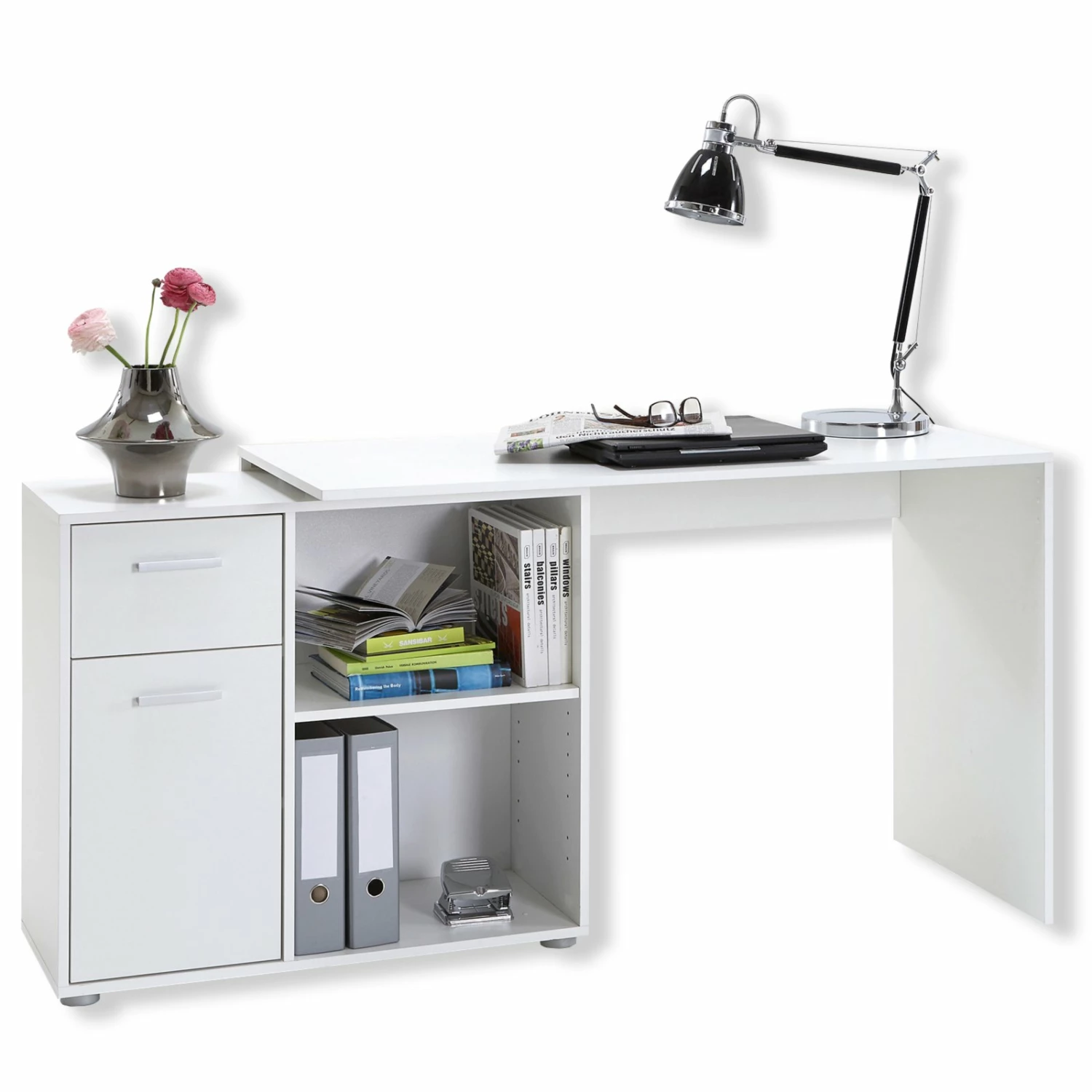 Dieser Schreibtisch überzeugt vorallem dadurch, dass er sich an Ihre Bedürfnisse hinsichtlich des Platzangebotes anpasst. Sie können den Tisch nämlich entweder über Eck stellen oder auch gerade. Zudem bietet Ihnen der Schreibtisch mit einer Tür, einer Schublade sowie dem offenen Fach mit einem Einlegeboden viel Stauraum.