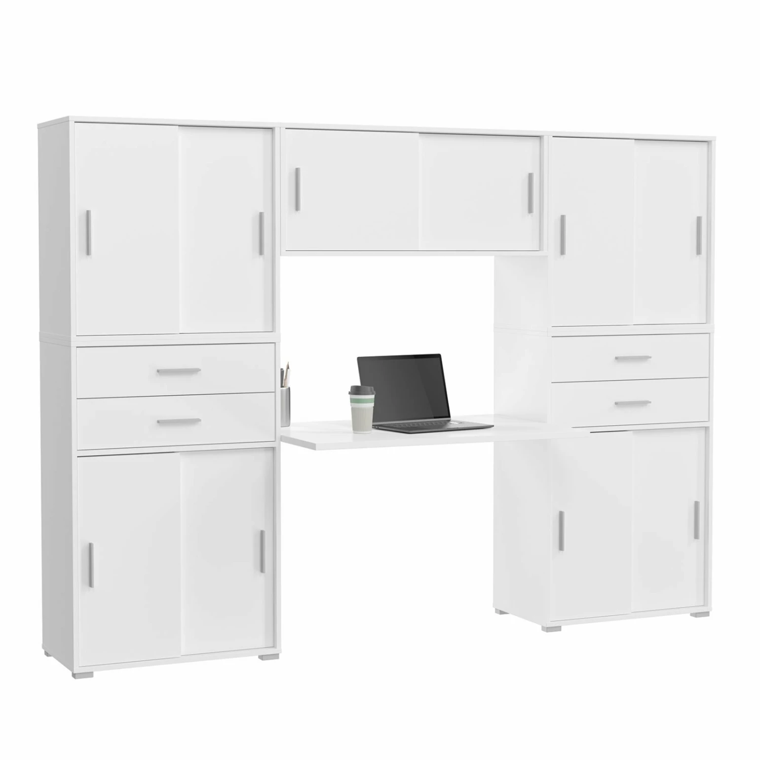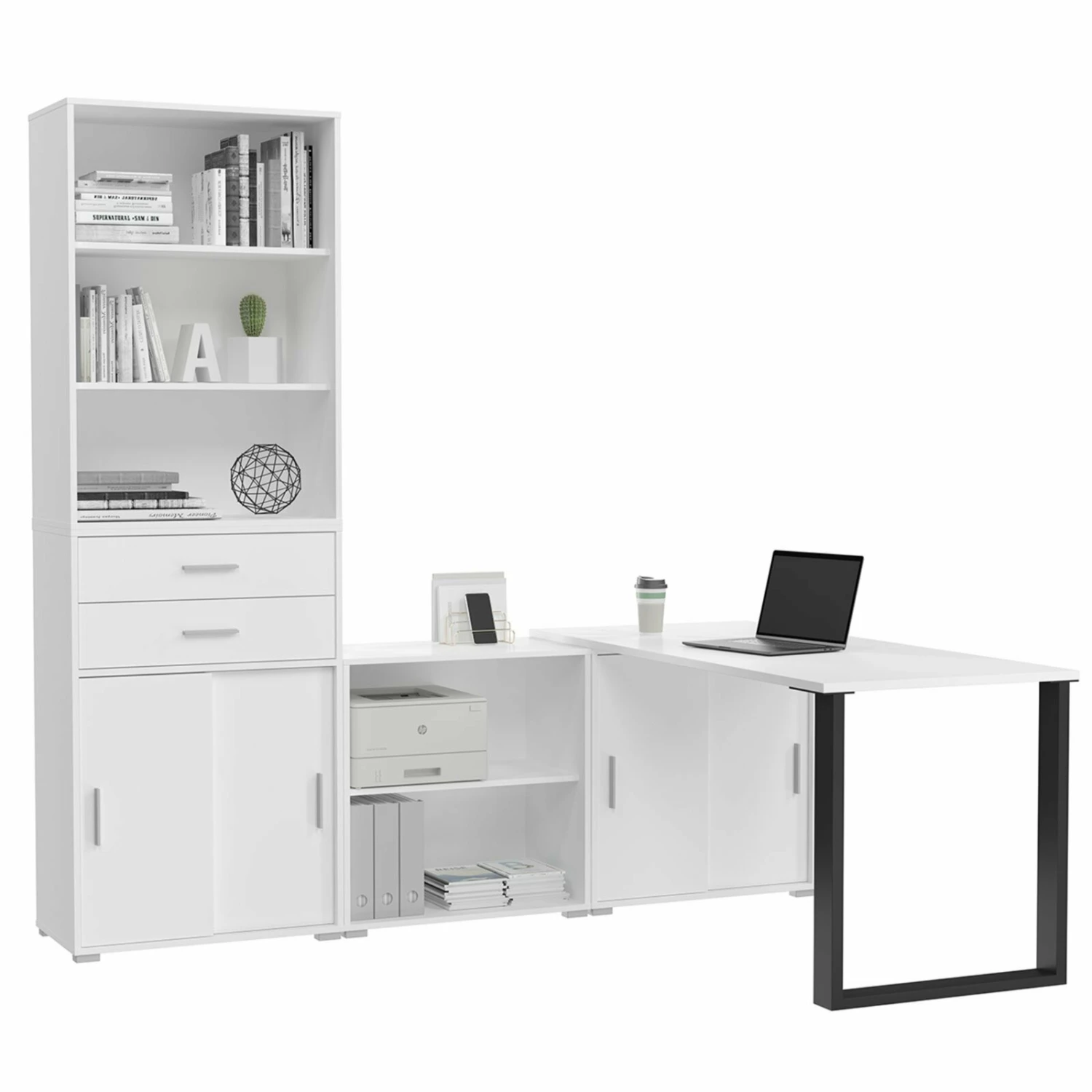 Diese Schreibtischplatte in Weiß können Sie nach Ihren Wünschen flexibel kombinieren und dient als praktischer Arbeitsplatz. Ob auf zwei U-förmigen schwarz gepulverten Metallfüßen, auf einem Fuß und einer 72 cm hohen Kommode oder als Zwischenelement zwischen zwei Hochschränken aus diesem Programm – stellen Sie sich Ihren Schreibtisch individuell zusammen.