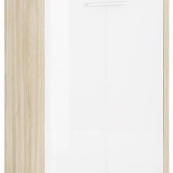 Eiche naturfarbenes Sideboard SET+ mit 2 Türen mit Weißglasbesatz und 2 höhenverstellbaren Einlegeböden. Der Korpus ist mit Melaminharz beschichtet und die Kanten mit ABS ausgestattet, so ist dieses Schränkchen kratz- und stoßunempfindlich.